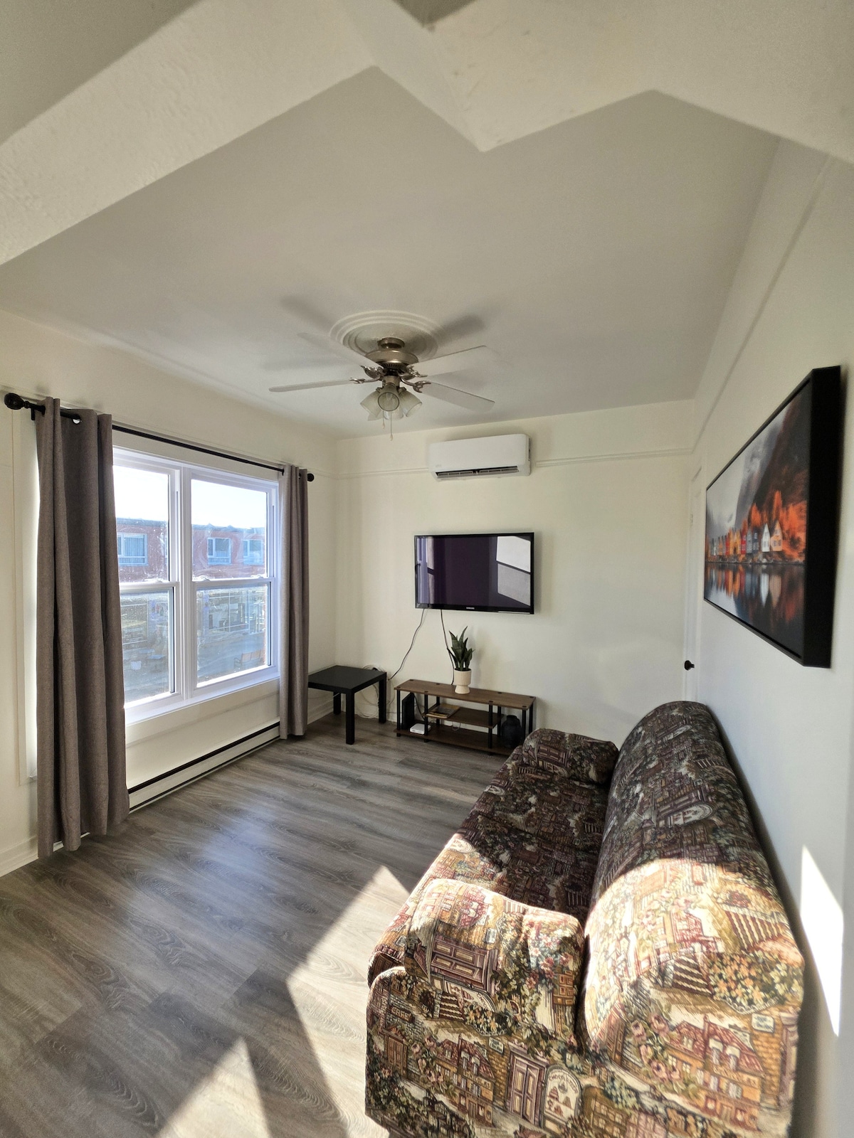 Appartement lumineux au 2e étage, juste au-dessus du restaurant Pizza Pointe. Nuissance nocturne possible les vendredi et samedi 2 chambres confortables et un divan-lit au salon, parfait pour groupes d’amis ou familles. Table de billard pour se divertir. Emplacement central : bars, restos et commerces à quelques pas. Numéro d’établissement CITQ : 321663