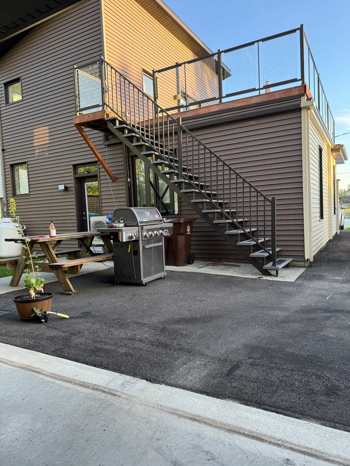 MAJESTIC VIEW of the St. Lawrence River and the Laviolette Bridge. Enjoy Villa Grande Casa, a luxurious and modern residence with a refined style. Located at the foot of the bridge in a peaceful neighborhood 6 minutes from downtown/close to everything - Accommodates up to 12 people - 4 bedrooms (3 queen-sized ZedBed memory foam beds and 1 king-sized Sealy Prestige bed) and 2 sofa beds with real queen-sized mattresses - 2 full bathrooms (bathtub-shower and walk-in shower) CITQ 309758