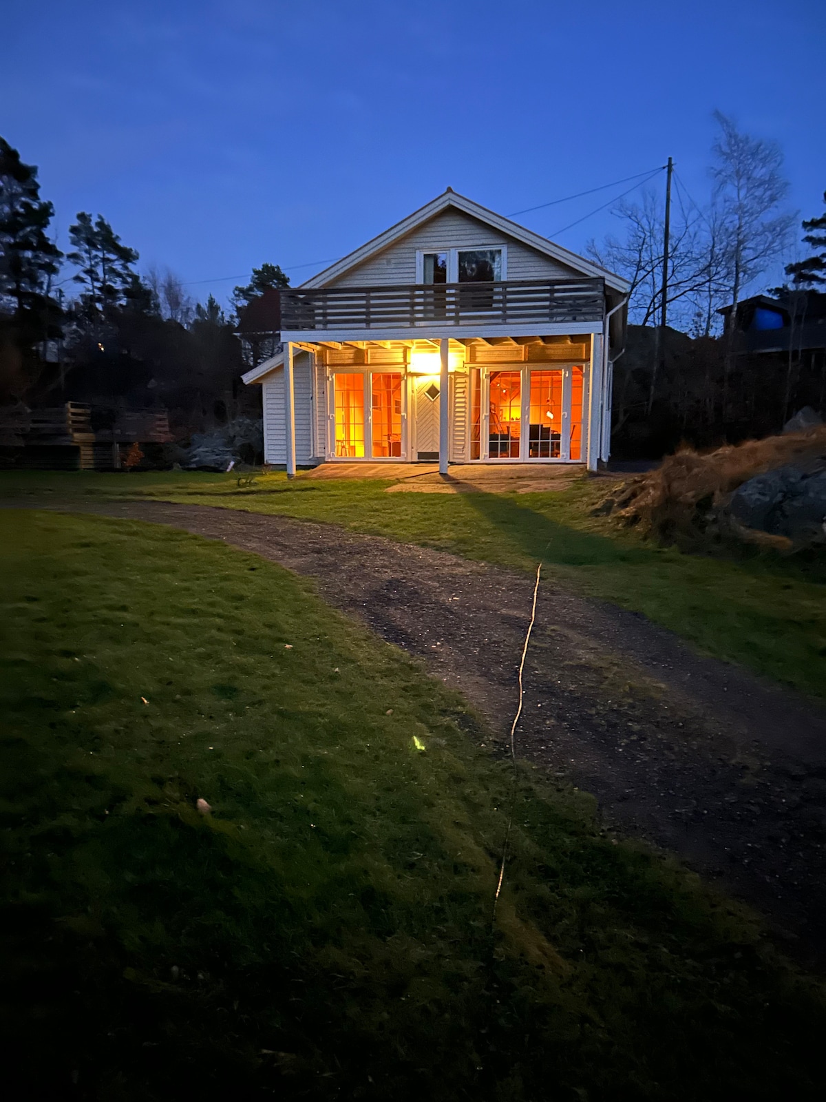 Huset er fra 2001,arkitekttegnet og kledning i osp. Det ligger helt usjenert til, det er 200 m til nærmeste nabo og grenser til Raet nasjonalpark på Tromøya. Flere strender 5-10 min unna med bil. Det er 150 meter til båt-og badeplass fra huset. Huset er 5 min fra nærmeste butikk og under 20 minutter fra Arendal. (med bil) Det er 4 soverom, 2 bad og 8 soveplasser(3 med dobbeltsenger og ett med 2 enkeltsenger). Det er kjøkkenhage og drivhus som må vannes, men det kan også høstes.