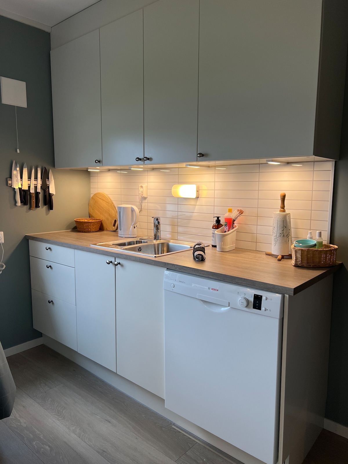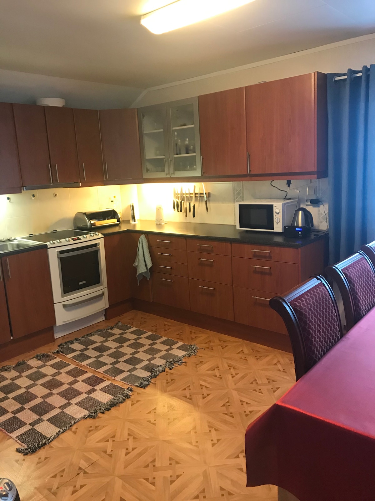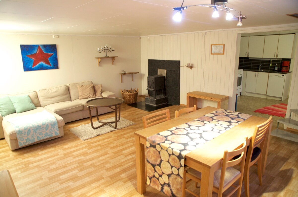 Brand new apartment on the ground floor of our house in the upper center of Tromsø. The apartment is of a very good standard. One bedroom with a double bed 180-200, kitchen/living room, sofa bed in the living room and a bathroom with shower. Washing machine in the bathroom. Underfloor heating throughout the apartment. Walking distance to the city. Close to the bus stop. Brand new kitchen with necessary equipment for cooking.