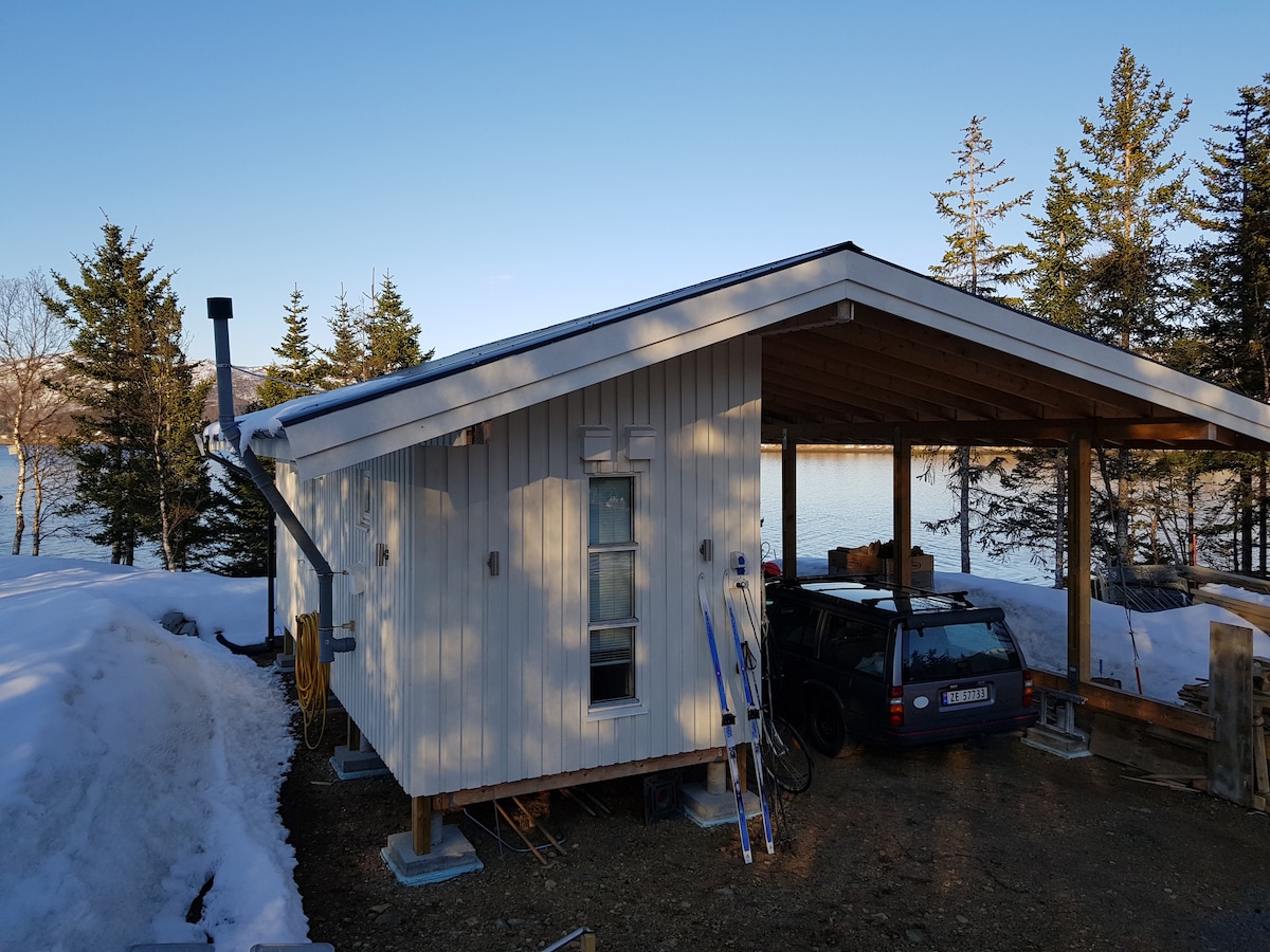 Hytte som ligger helt ved sjøkanten, stille område uten gjennomgangstrafikk. Dette er plassen hvor du blir alene i ro og fred. Enkel tilgjengelighet med 30 meter fra trafikkert vei. Greit med parkering. 32 km fra flyplassen. Flere matbutikker på vegen fra flyplassen. Veldig gode muligheter for nordlys, skiturer, fisketurer og flere turoperatører i nærheten. (hundekjøring, havfiske, fjellturer)