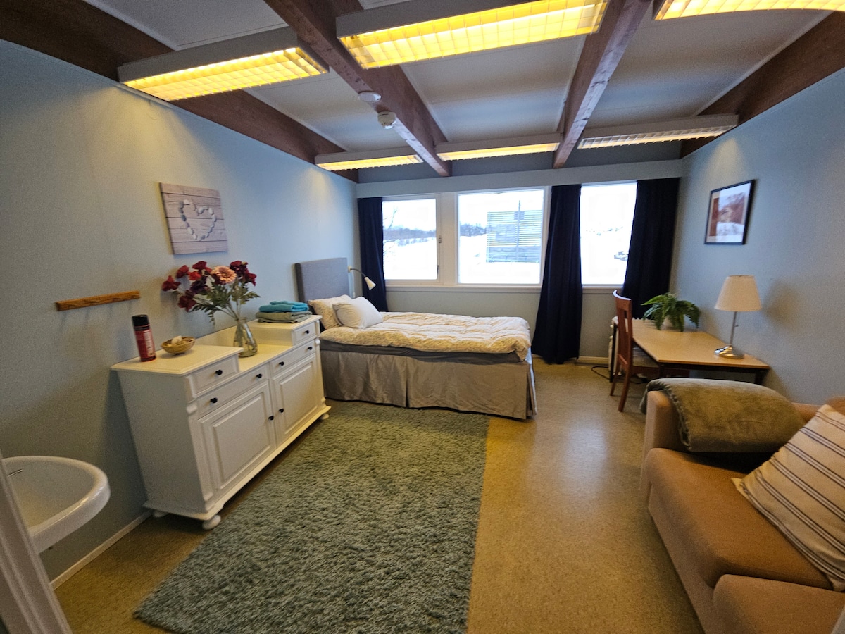 Ministudio 17m2 with everything you need for a comfortable stay, private entré 14 km north east of Narvik overlooking the sea.3 km from the exit to Sweden E10 No stove, only one hob! Stove inn laundry room! ask me :) Free wifi, parking, washing machine/ dryer,Sauna. ( No public transport ) Riksgrensen (Sverige) 27km Flyplass 60km Svolvær (Lofoten) 220km Tromsø 231km