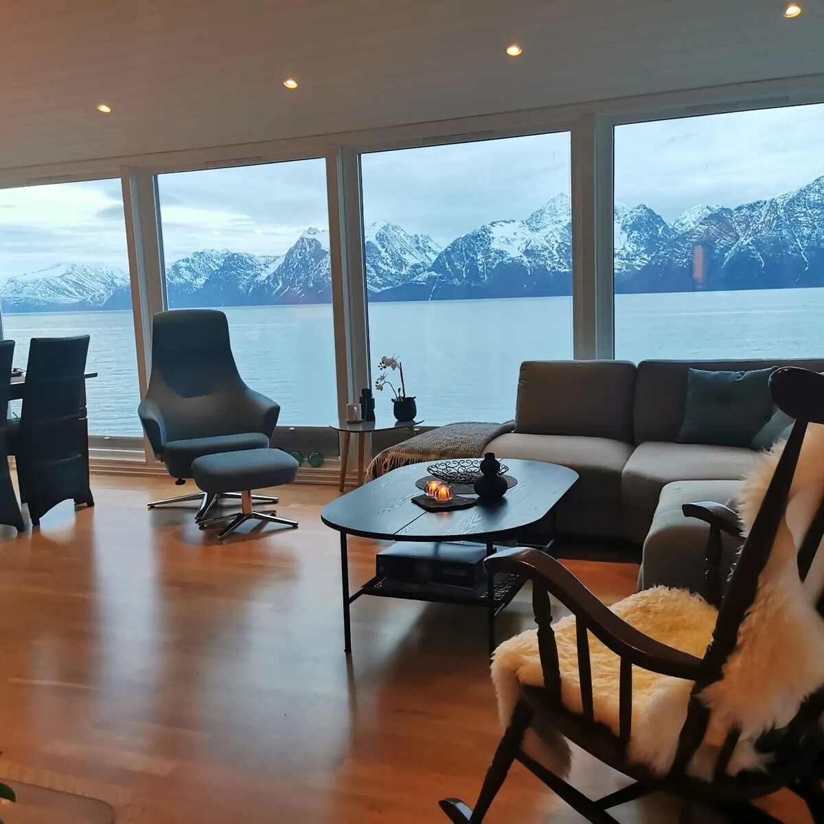 Hytten ligger på et berg bare 50 meter i fra havet med en fantastisk utsikt over Lyngenfjorden med Lyngsalpene i bakgrunn. Utsikten er unik! Hytten ble tatt i bruk i 2016 og har alle fasliteter både for korte og lengre opphold. Hytten er lun og varm, med peis i stuen, varmegulv i alle oppholdsrom og aircondition/varmepumpe. Hele fronten av hytten består av glass fra gulv til tak. Her finner du ro og velvære som gjør godt for kropp og sjel. For ekstra nytelse kan man ta seg ett bad i Jacuzzi.