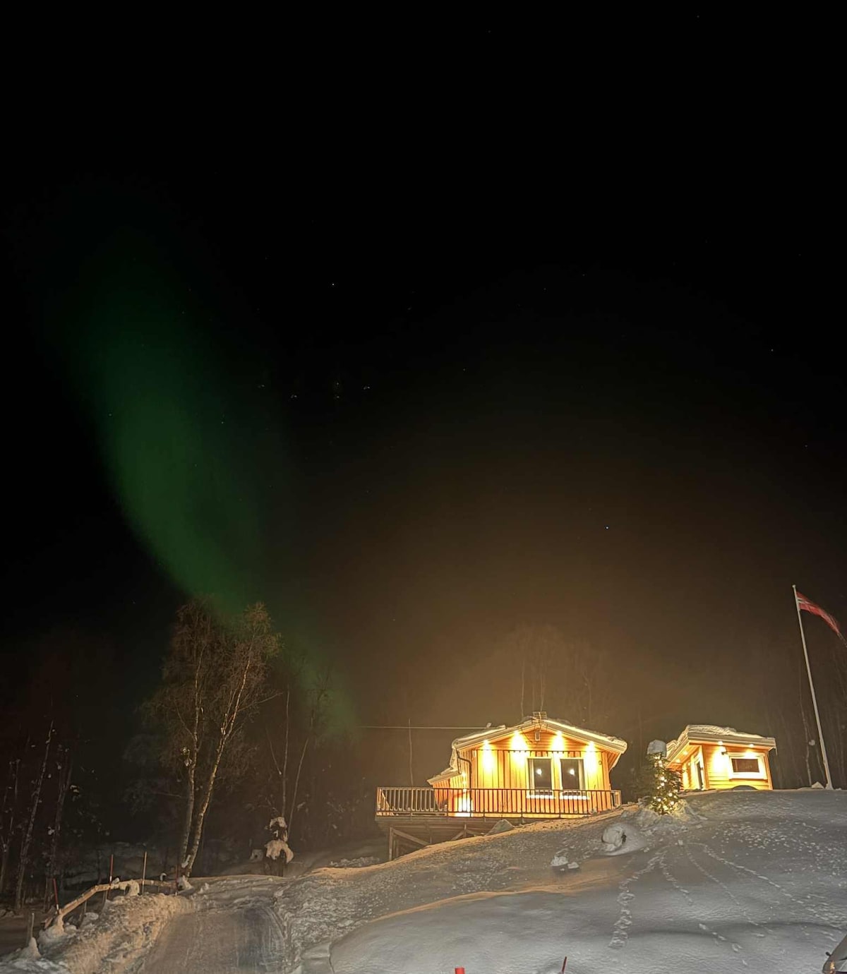 Dette er stedet for deg som ønsker “det lille ekstra“ under din ferie. Hytte bygd i 2023 med høy standard, gode møbler/senger og sauna! Vi gjør vårt beste for at du skal få et minnerikt og deilig opphold! Her kan du nyte stillheten og se etter nordlyset. Hytten ligger tilbaketrukket på en høyde med mørke omgivelser og utmerkede forhold for å se nordlyset. Kun 20 min i bil fra Tromsø lufthavn. Fra panoramavinduene i stua kan du nyte utsikten mot Tromsøya, fjorden og fjellene. Velutstyrt kjøkken!