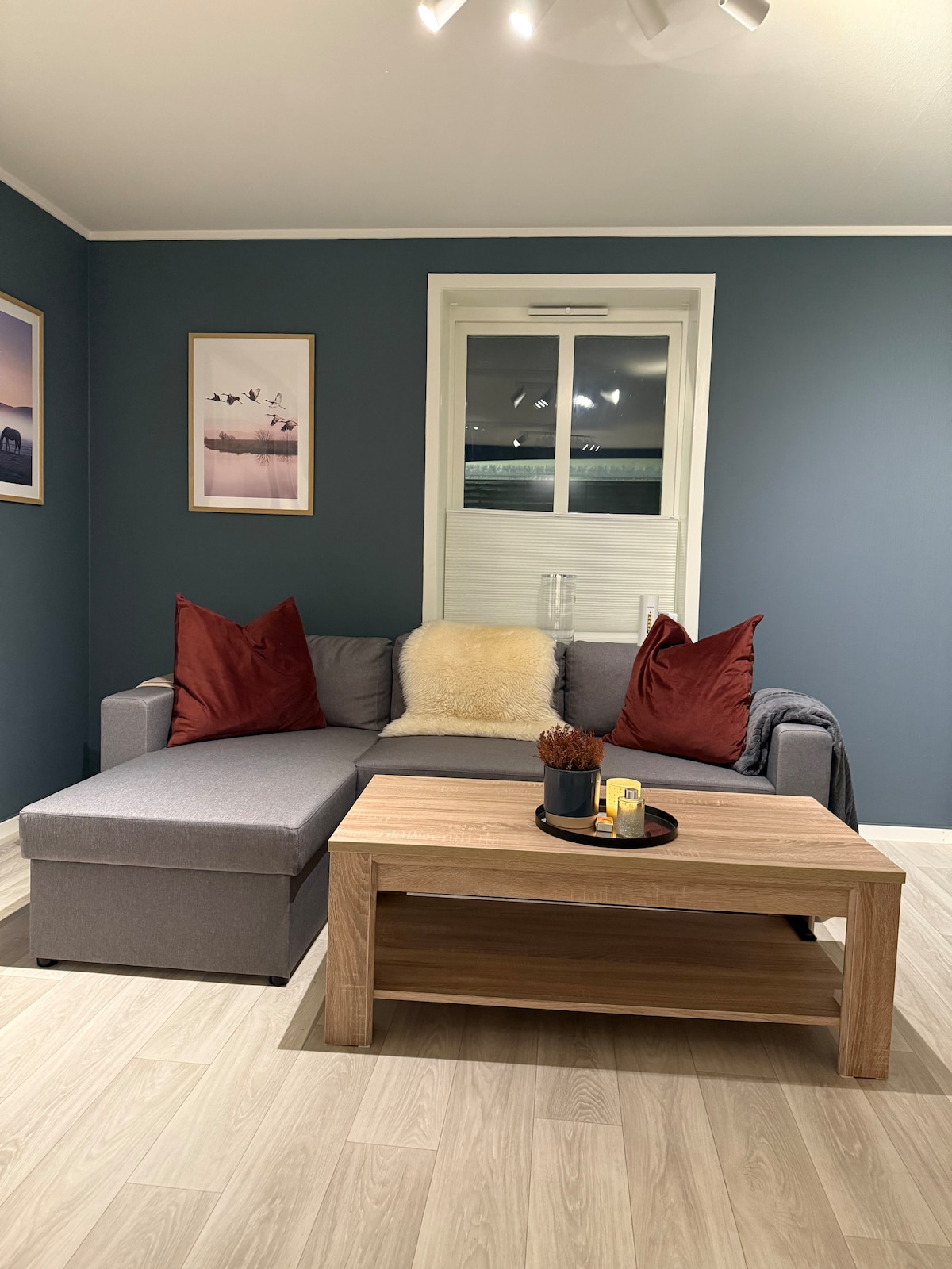 Fredelig, fjellutsikt, nært sjøen/ butikk, fri parkering Koselig ny leilighet fra 2023. Varmekabler, moderne kjøkken med oppvaskmaskin, ovn med integrert mikro, induksjonstopp, kjøl og fryseskap. Nytt bad med fliser og varmekabler. Dobbelseng 180X200 (NY)! Vaskemaskin på forespørsel. Garderobeplass med kurver. Utsikt sørvestvendt. Rolige omgivelser. Gratis parkering . Stor matbutikk i nærheten ( søndagsåpent). Kort spasertur til sentrum, ca 15. min, til busstop ca 2. min. Fine omgivelser!