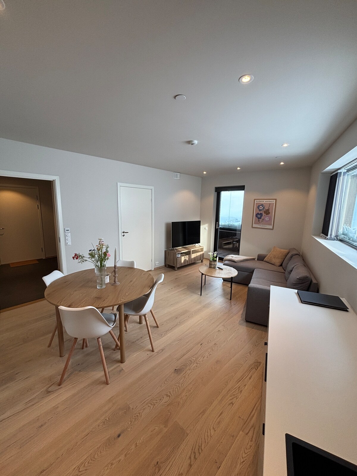 Denne flotte og sentrale leiligheten ligger i 2 etasje og er 43 m2. Leiligheten inneholder gang, soverom, bad og stue med kjøkkenløsning. Det er også en privat balkong. Vervet area is a newly developed district in Tromsø, with restaurants, cafes right by. The city center is only a 5 minutes’ walk from the apartments, same for the Artic Cathedral across the bridge. The apartment building is modern and placed right by the harbor.