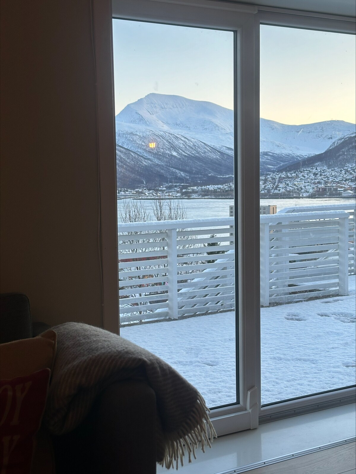 The apartment is spacious and has an amazing view. You have a 180 degrees view over Tromsø and its surroundings. You can see mountains, the fjord, the Arctic cathedral, the cable car and the mountains surroundings it..The Northern lights can easily be seen from the balconies if it is out dancing for us. The apartment is within town center with its many attractions, restaurants, galleries, cafes, museums and shops. A short walk to everything.