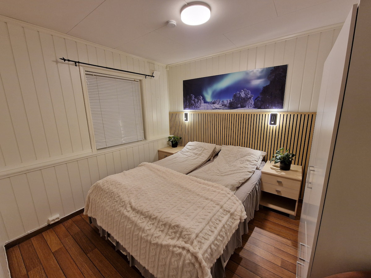 Ideell overnatting for 2 personer. Sove alkove med dobbel seng, stue med sovesofa, kjøkken, bad og arbeidsplass. Egen uteplass med bord og stoler. Gratis parkering. Naturskjønne omgivelser ,omringet av fjell og hav! 15 min kjøretur fra flyplassen og 25 min til Tromsø sentrum. 5 min til dagligvarehandel.