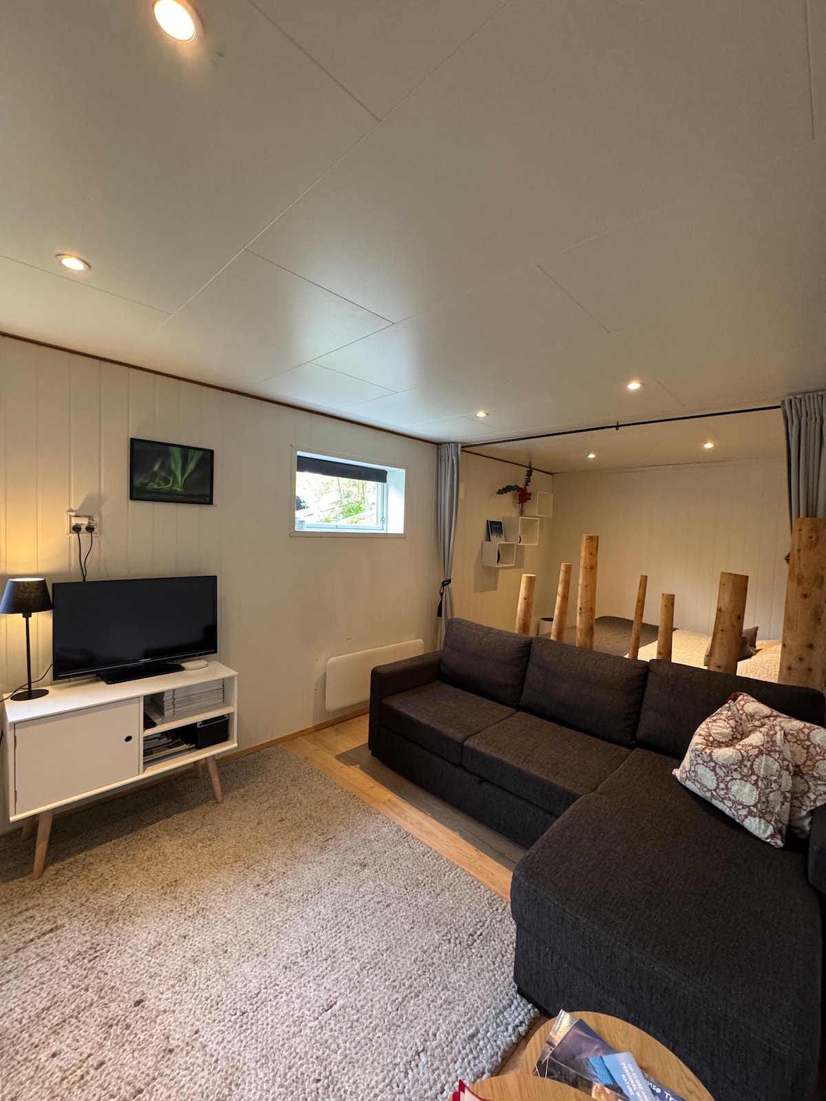 Her kan du virkelig nyte livet på landet i en stilfull campingvogn. Grillhytta står også klar til bruk hvis det er ønskelig. Her kan du ta ett skritt ut av campingvognen og se det nydelige nordlyset når været tillater det, og sitte ute ved bålet under nordlysets dans på himmelen. Campingvognen er utstyrt med sentralvarme og gulvvarme, som sikrer at den holder seg varm og komfortabel selv om vinteren. Vi har en katt og en hund på gården som elsker kos