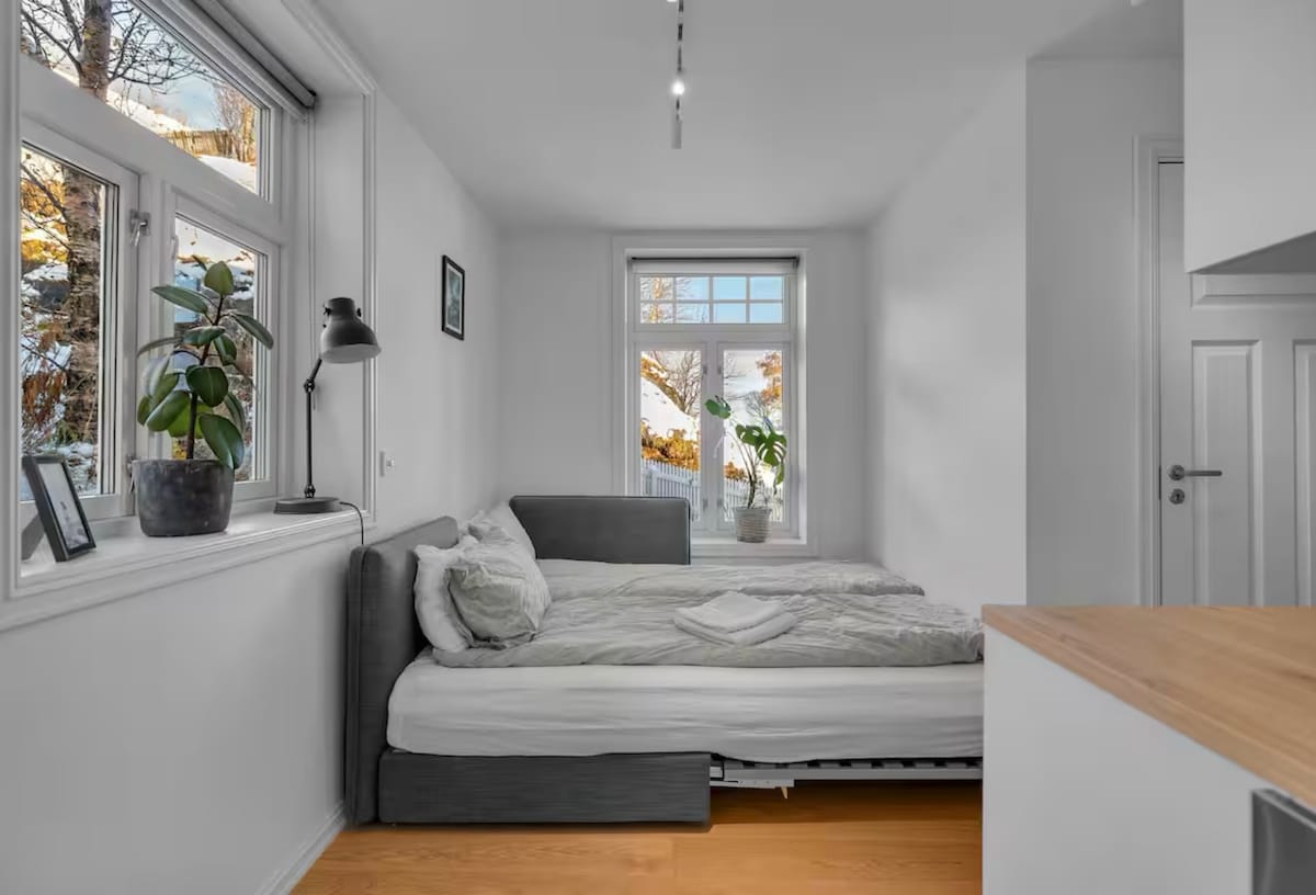 Love staying central? Then this place is for you! This modern apartment sits right on the main street of Tromsø — you can’t get more central than this. Step outside to find shops, cafes, restaurants, and bus stops all within a few steps. The apartment is on the third floor (no elevator, unfortunately). - The whole place is yours alone. - Bright, cozy, and fully equipped kitchen - Bed linen and towels included - Super easy self check-in with key box
