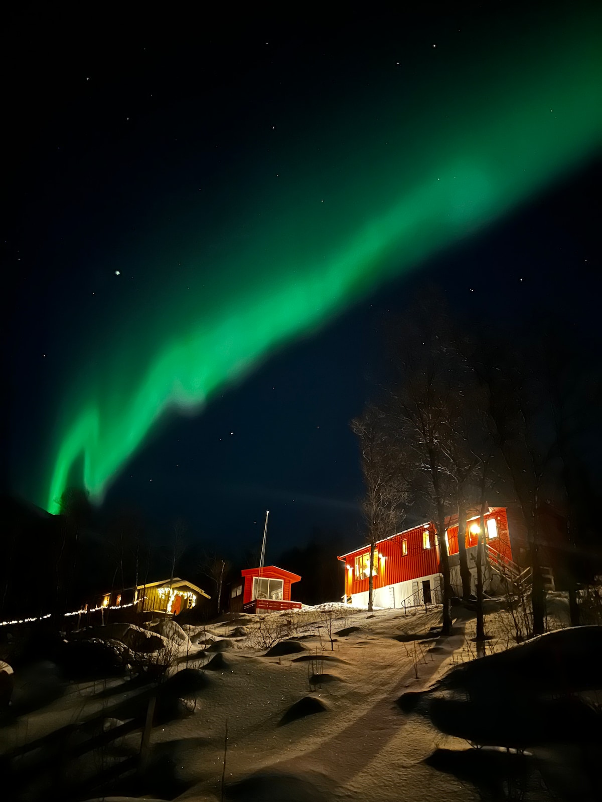 Cabbin only 26 km from Tromsø Airport, 20 km from City senter , a perfect location for watching the mythical northern lights! The Polar night lasts from about 27 November to 21 January. The sun stays below the horizon for the entire period. The midnight sun is visible from about 20 May to 22 July. Northern lights you can spot during the period from the beginning of September to the middle of April.