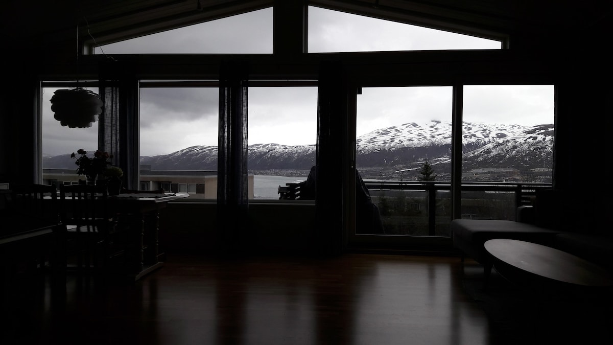 Bo i ny moderne leilighet, med alle fasiliteter for hele familien. Utsikt over Tromsøya, sjøen og fjellene på Kvaløya. Nærhet til naturen. Om sommeren kan du følge sti rett bak huset til fjellheisen og Fløia. Fra terrassen kan man se midnattssolen om sommeren og nordlyset om vinteren, hvis været tillater det. Ta et forfriskende bad i Jacuzzi ute, mens nordlyset nytes. Destinasjoner i nærheten: Kjøpesenter: 3km Flyplass: 9km Buss stopp: 100m Fjellheisen Gondol: 3km Ishavskatedralen: 3km