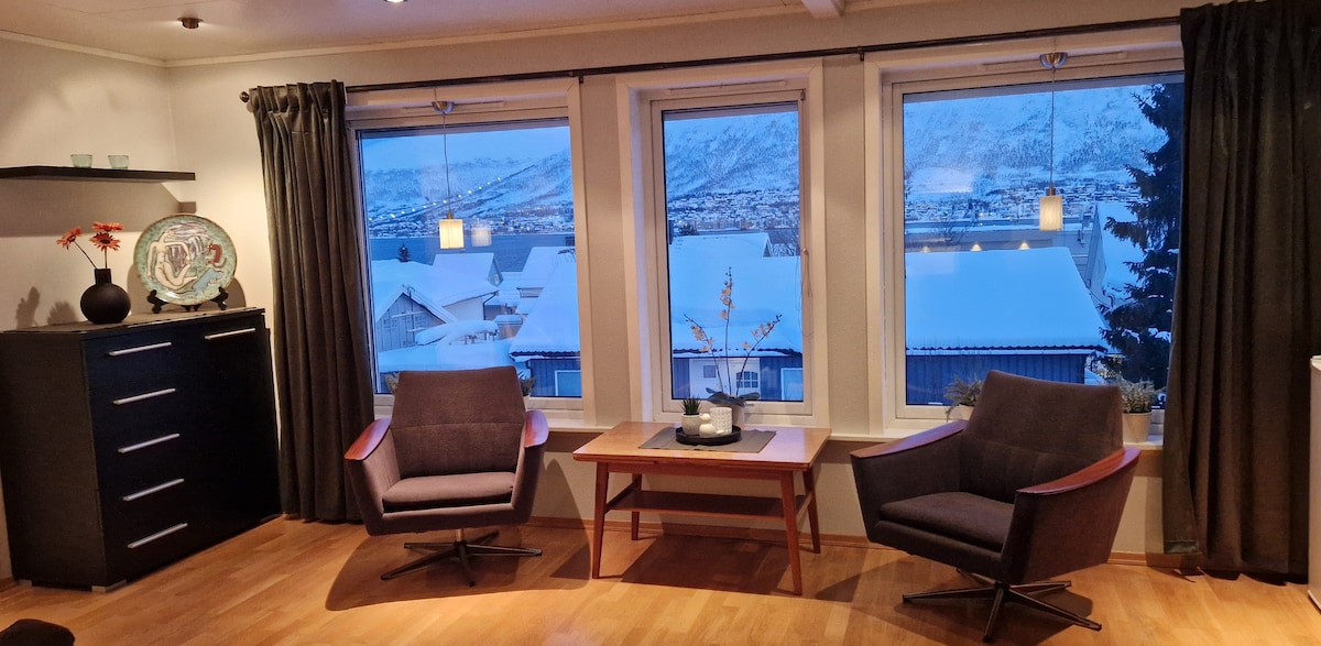 Welcome to our charming apartment with a beautifull view, located in one of Tromsø’s quiet yet central streets. Just 5-7 min walkingdistance to the Tromsø center. It is close to the busstopp, skiing area, swimmingpool, gym, aurora tours, shopping and outdoor playgrounds, cafes and restaurants are just nearby. Whether you're here to explore the Arctic, catch the Northern Lights, or simply relax, our home is the perfect base for your stay.