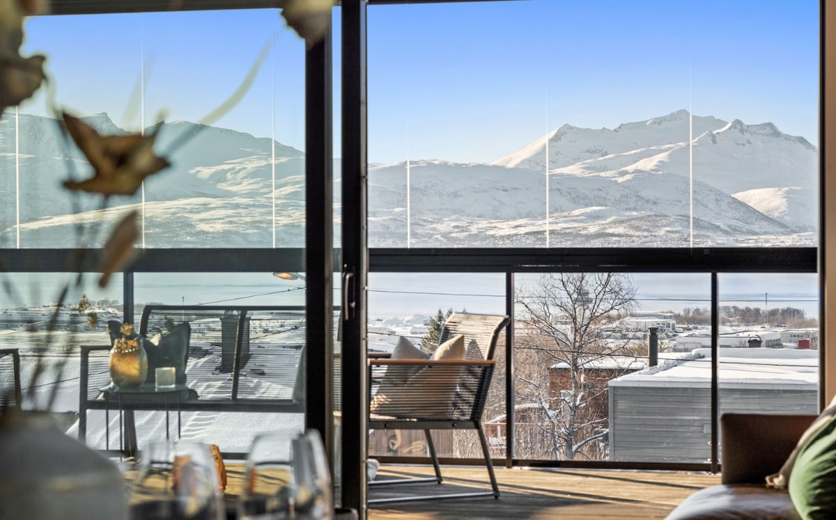 Stylish top-floor apartment by the sea in central Tromsø with an impressive view of the Arctic Cathedral, Tromsø Bridge, Cable car, midnight sun and the Northern Lights. Enjoy Hurtigruta sailing in from the sofacorner and hear waves lapping outside. The entrance is part of a glazed terrace with views to the south. The center is a 10-minute walk away. The apartment is open, inviting, and a nice & comfortable place to spend your time. Age limit to rent: minimum 25 years. NO SMOKING OF ANY KIND.