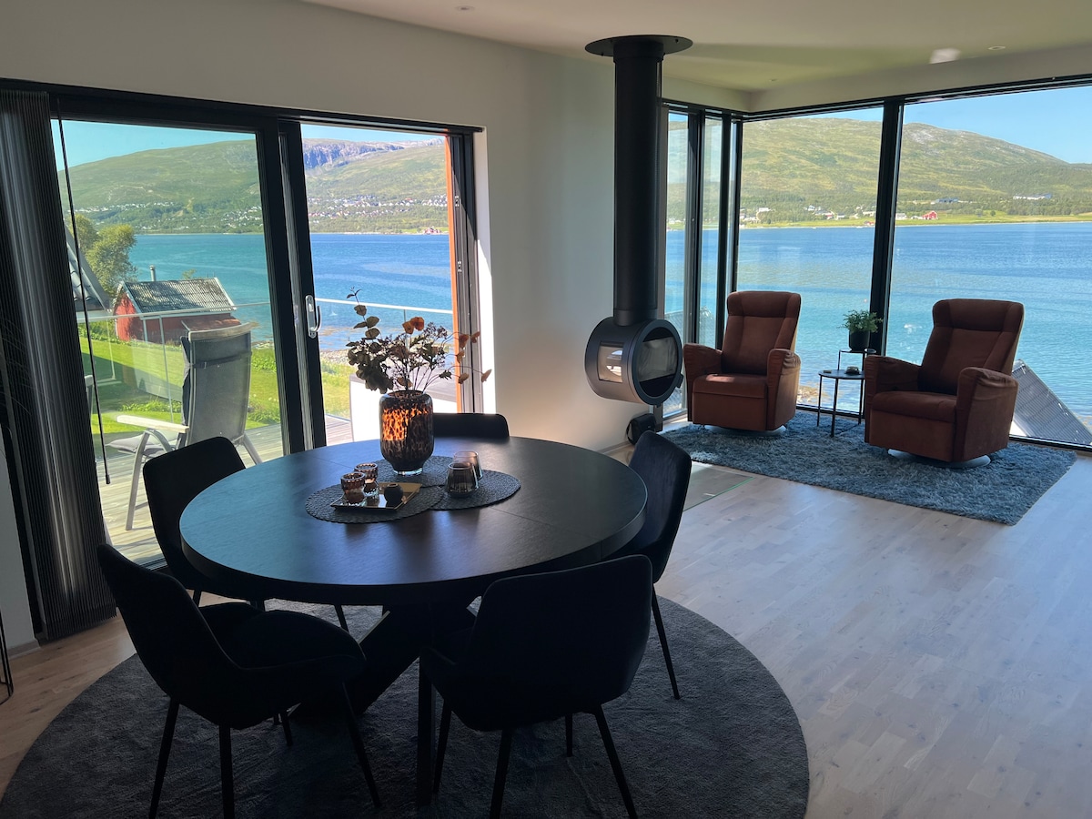 New apartment in the most exclusive area of Tromsø´s west sea side. 5 minute drive (30min walk, 10min bicycle) to city centre. Similar to the airport. Seaside apartment with breathtaking view all seasons. A perfect starting point for bicycling, aurora-watching, fishing, canoeing, hiking or city walks - depending on season and interests.