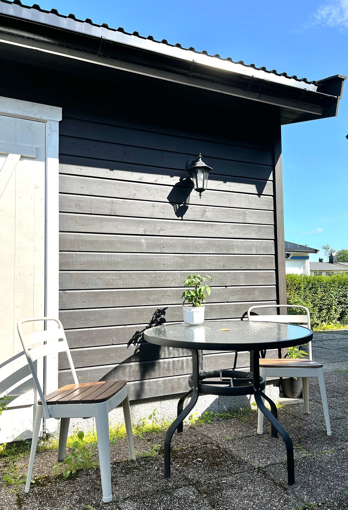 Hyggelig kjellerleilighet med egen inngang, uteplass og fri parkering. Nært bysentrum. Her har du alt du trenger for ditt opphold på Stjørdal.