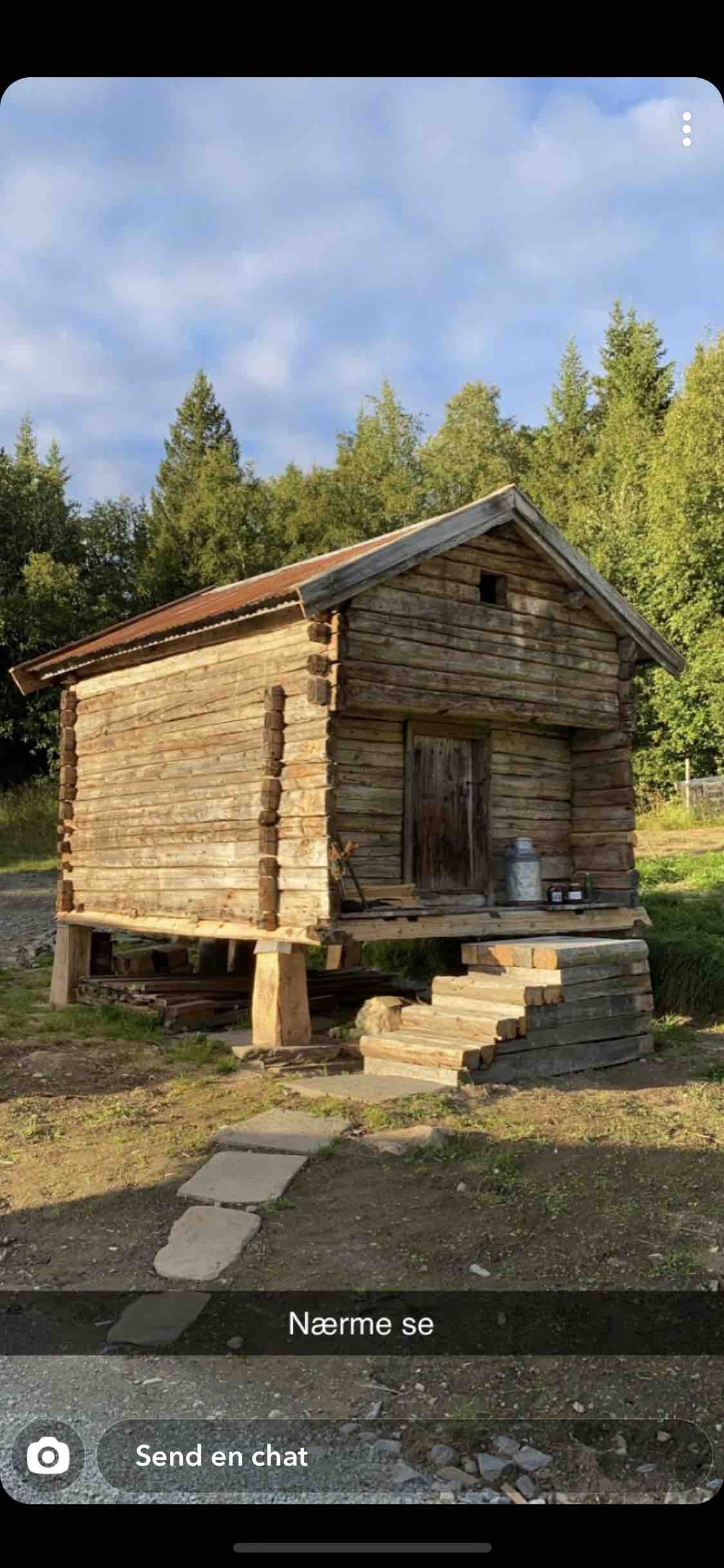 Idyllisk tømmerbu på sætervoll