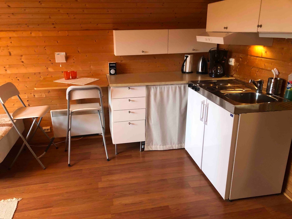 28 m2 ettroms hytte / leilighet, med kveldssol. Ideel enten for ei natt på veg fra A til B, eller om du vil være en stund og finne roen i fredelige og landlige omgivelser med nærhet til Namsenfjorden, fjell og fine turområder, og samtidig ha kort avstand til byen. 200 meter til busstopp, 600 meter til hovedveien (kystriksveien), 2.4 km til supermarked, 4 km til Namsos sentrum, 6 km til flyplass.