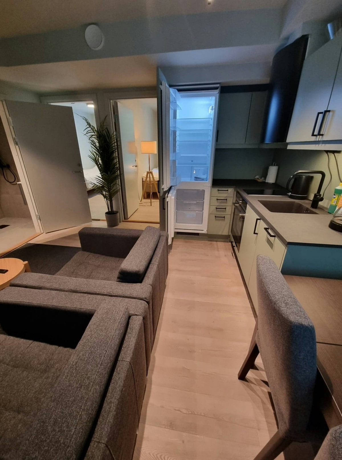 Newly renovated apartment in central Trondheim with top-tier café downstairs, excellent bus connections, 200/200 fiber internet, and a 55" Smart TV.