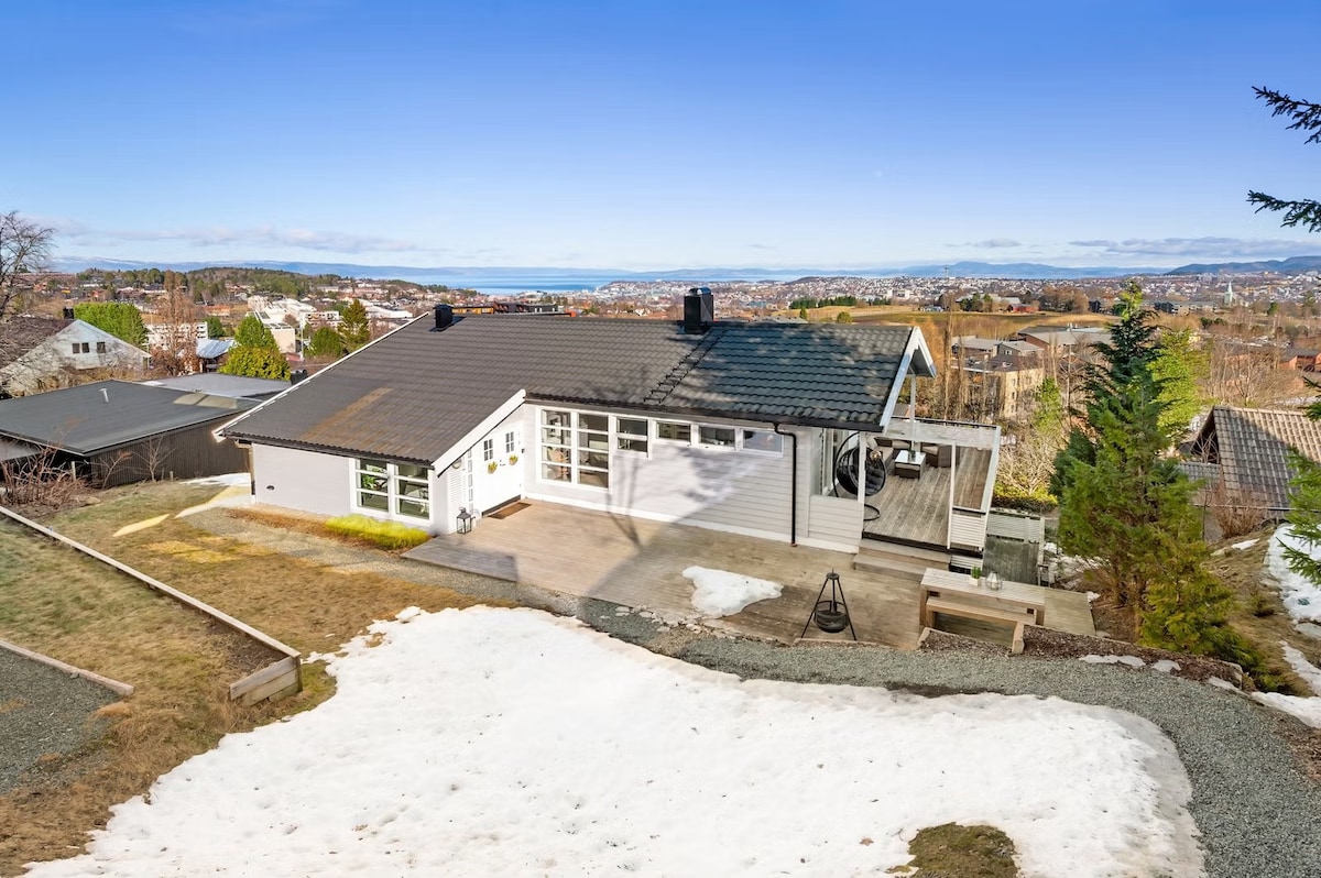 Velkommen til en romslig bolig med panoramautsikt og gode solforhold. Nyt rolige omgivelser og flott utsikt fra den store verandaen. På verandaen finner du også et utendørs boblebad som kan benyttes mot et tillegg på 800 kr for hele oppholdet. Boligen ligger kun ca. 5 minutter fra Heimdal sentrum med butikker og restauranter, og ca. 20 minutter fra Trondheim sentrum og Nidarosdomen. Perfekt for familier, vennegjenger eller kolleger som ønsker et komfortabelt opphold med god plass.