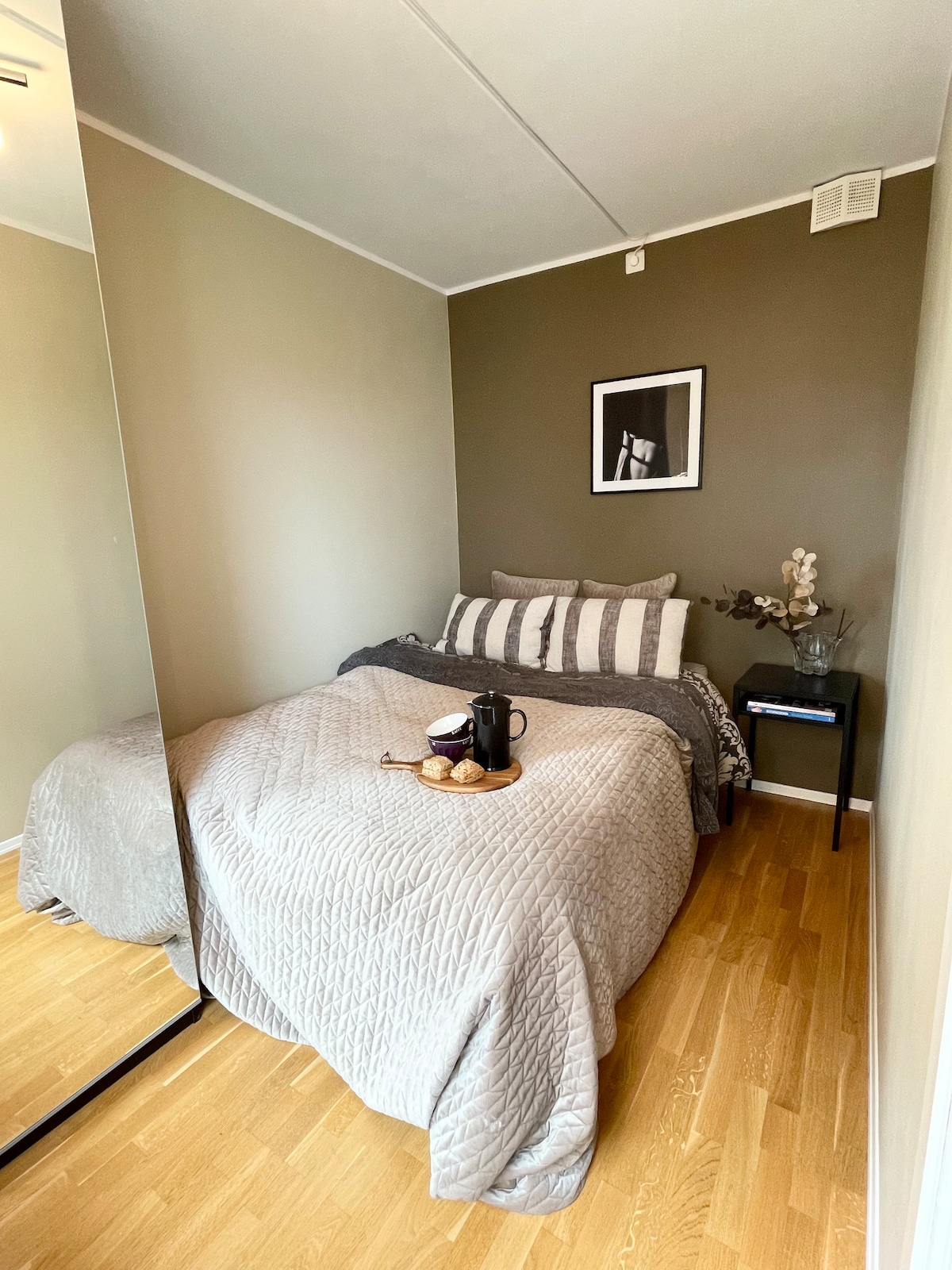 Koselig og moderne leilighet på 45m² med enkel tilgang til det meste du trenger i hverdagen. Det følger med egen p-plass til leiligheten, med mulighet for elbil-lading (mot et lite tillegg, ta kontakt). Leiligheten har en ypperlig beliggenhet i 3. etasje og oppleves uten sjenerende innsyn eller støy. Det bor en hund med oss til vanlig, så hunder er velkommen😊 Det er kun én dobbelseng i leiligheten, men vi har en dobbel luftmadrass eller enkelmadrass tilgjengelig. Ta kontakt på forhånd om dette