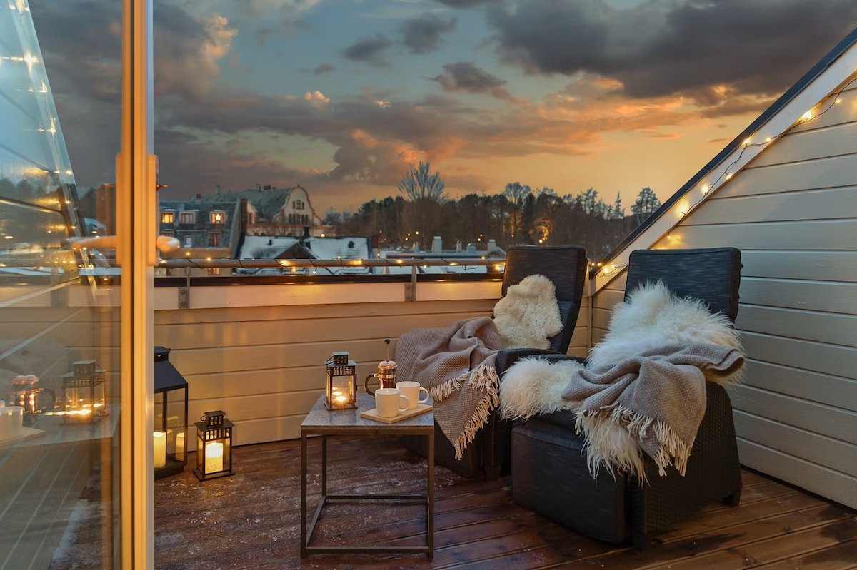 中央和时尚的顶层公寓,带屋顶露台