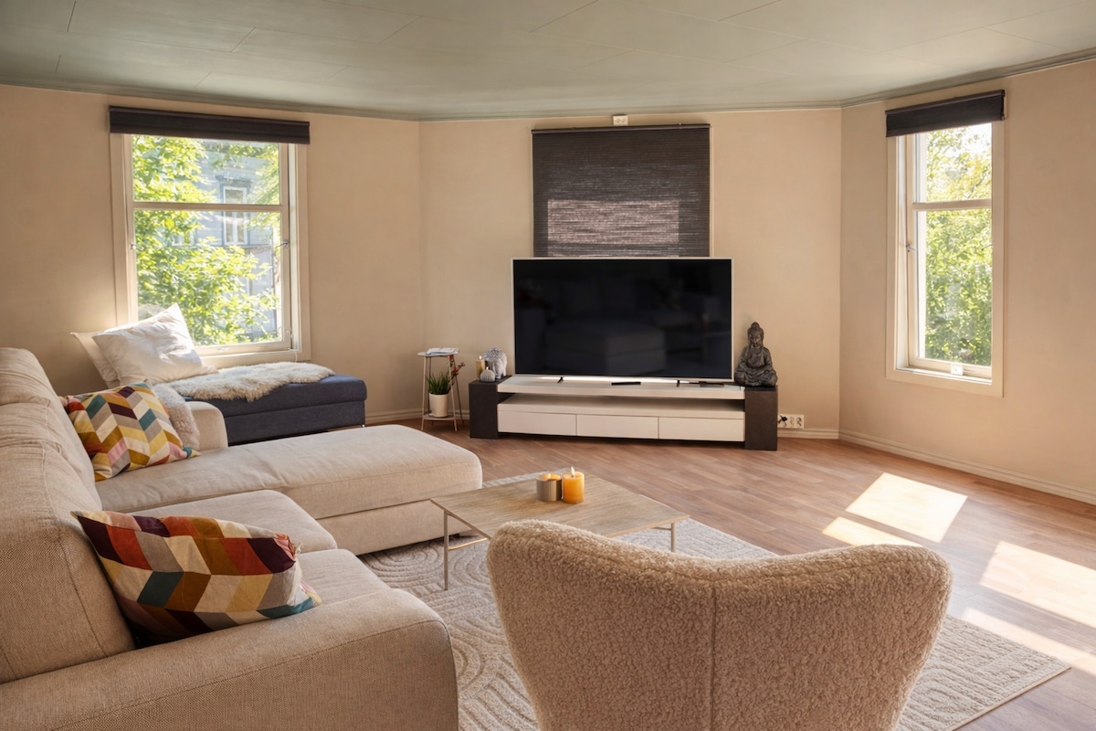 From this bright and beautiful apartment in the heart of Trondheim, you have immediate access to everything! ☀️🏡 Stay centrally in Møllenberg, one of Trondheim's most historic neighborhoods, with beautiful views and large windows that let in natural light. Walking distance to downtown, Solsiden, and Nidaros Cathedral. Perfect for couples, friends, families, and business travelers. A bus stop just around the corner provides easy access to the entire city.