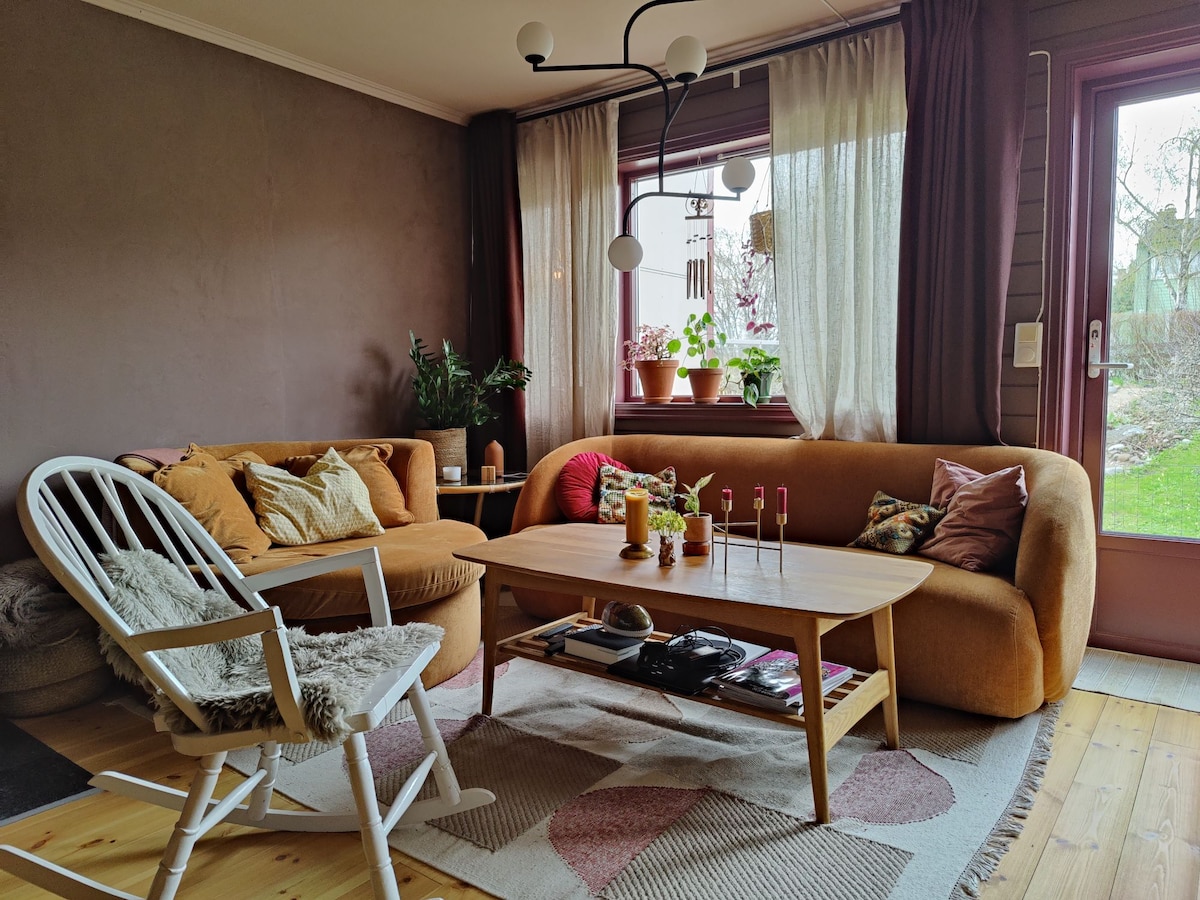 Central terraced house with 3 bedrooms and 1 bathroom. New kitchen (2022). TV with chromecast in all bedrooms and living room. Several zones outdoors with good sunny conditions. Spacious living spaces. Wood stove. Broadband (fibre). Free parking. Walking distance to: Stjørdalshallen / Turnhallen 550 m Kimen cultural center 1100 m Stjørdal station 1600 m 8-10 min drive from Trondheim Airport Værnes.