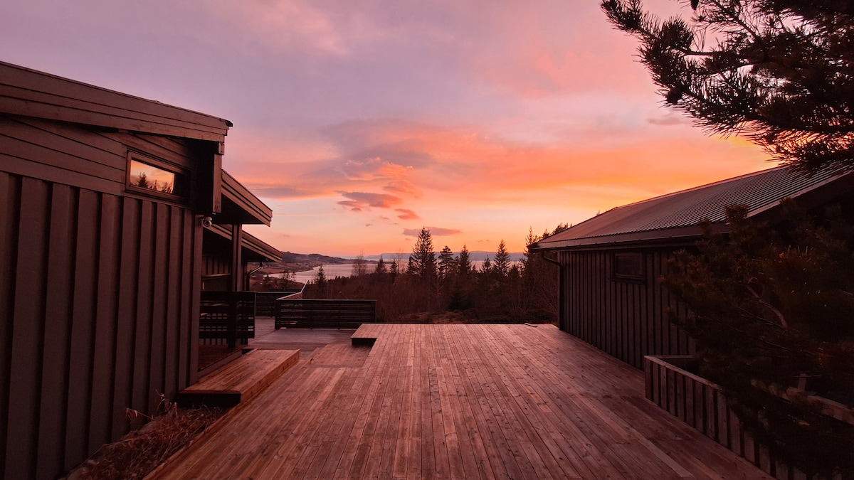 Cabin with magnificent view in a quiet place near Trondheim. Lots of outdoor space with terrace, BBQ, trampoline, garden and trees (3 acres) and easy access to hiking paths in Estenstadmarka. About 65 sqm indoor space with fully equipped kitchen and dining room with great view and fire place, living room with sofas/chairs, two bedrooms and loft bed, and a new electric toilet. No water resource: rain water from a container for washing. Drinking water needs to be brought to the cabin