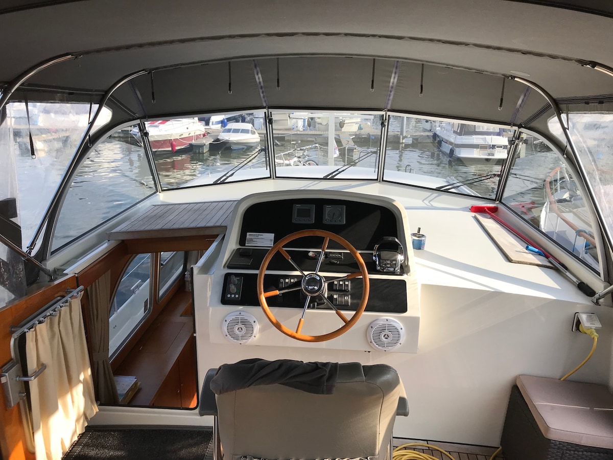 Bei unserem Hausboot handelt es sich um ein gemütliches, modernes festliegendes Boot, welches an einer Steganlage eines Campingplatzes liegt. Die hochwertige Ausstattung und der traumhafte Blick über den Templiner See machen uns die Abreise jedes mal schwer. Im Sommer geniessen wir die 90 qm Dachterrasse, die auch zum Grillen einlädt. Durch Fussbodenheizung, Kamin und eigener Sauna machen wir unser Hausboot auch im Winter zu einem traumhaften Rückzugsort.