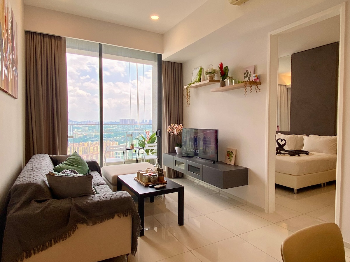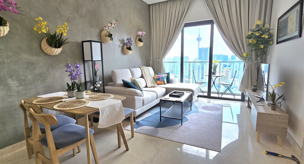 Sit back and relax in this calm, stylish space. Why Orchid 2BR suite at Lucentia Residence: - Best views of KL - Beautifully decorated with a fun spirit - Centrally located & attached to public transit hub - Fast wifi - 2 TVs with Netflix & others - 2 gorgeous pools - Family friendly with baby crib & highchair - Gym, pool table, BBQ pits, piano - Garage parking - Recommended to Sleeps 5, max 6 - LaLaPort Shopping Mall & the WOW entertainment street are attached - Grocery, drug store & Cinema etc