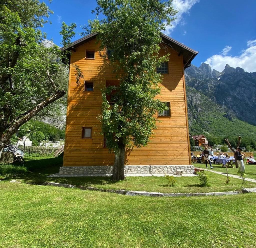 Ideal place to be in touch with nature. Our guest house provides 6 big rooms with private bathroom with 2 beds each ( 1 double and 1 single or 1 double and 2 single .Breakfast included. All the amenities one may need are included : Wifi , AC, cozy fireplace, cooking and dinning areas, great landscape and mountain view of Valbona National Park, welcoming hosts and unforgettable moments to share with your loved ones .
