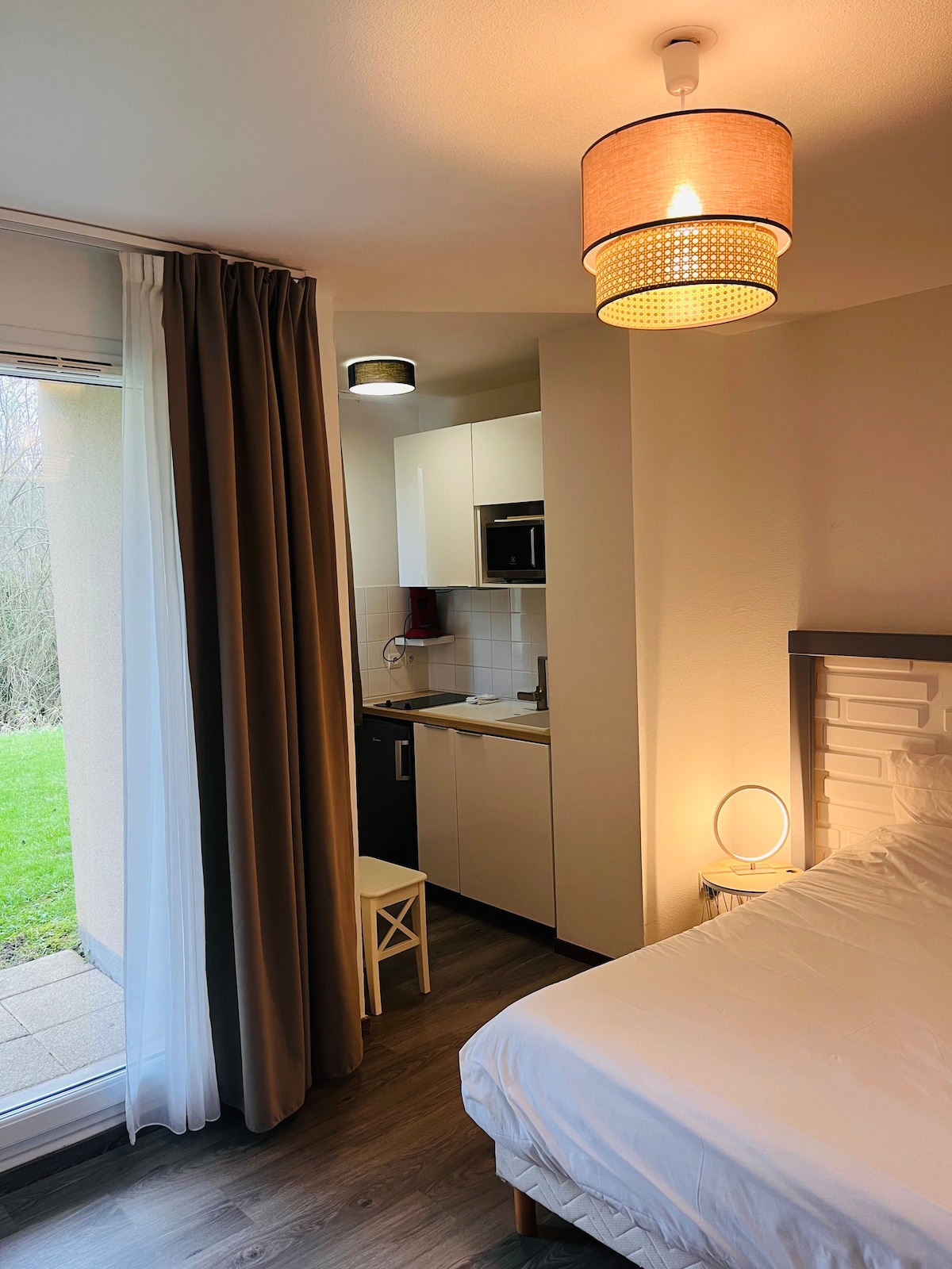距离翁弗勒尔停车场/游泳池5分钟的优雅单间公寓