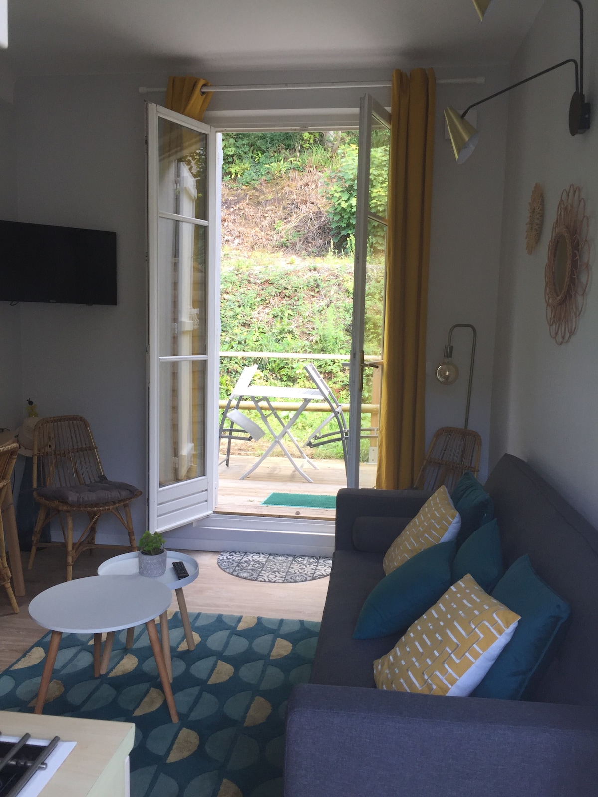 En centre-ville, studio clair, situé en rez de chaussée d'une jolie résidence à 200 m environ de la Gare SNCF de Trouville-Deauville, à environ 10’à pieds de la plage; pistes cyclables, commerces et bornes électriques pr voiture. Logement de 23m2, wifi, cuisine ouverte, salle d'eau avec wc, pièce de vie avec 1 lit 140. Jeux de société, livres,CD.NON FUMEUR. Matériel de puériculture sur demande. Animaux silencieux, propres bienvenus. Prêt du linge de maison, en option payante place de parking