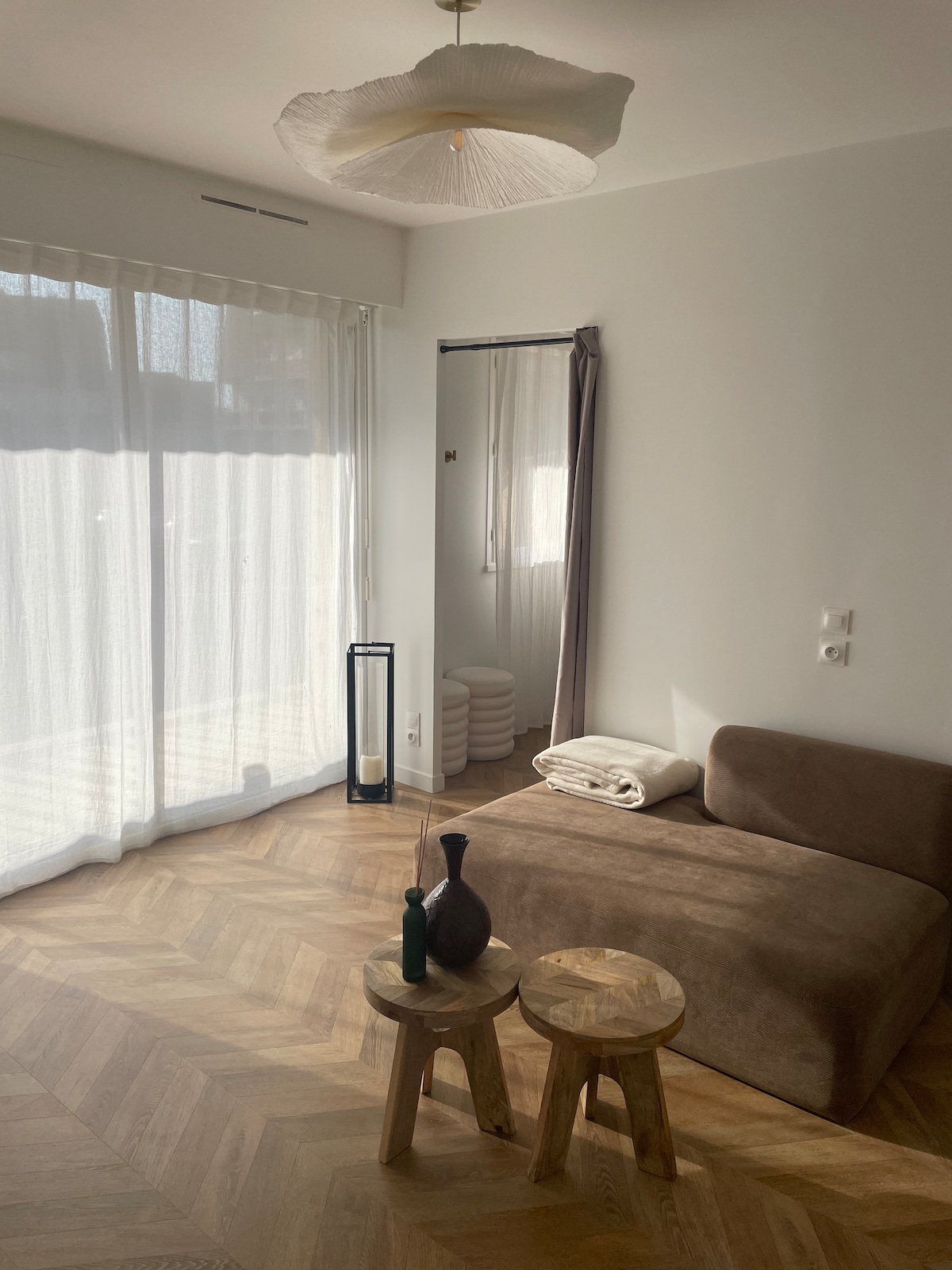 En centre-ville, studio clair, situé en rez de chaussée d'une jolie résidence à 200 m environ de la Gare SNCF de Trouville-Deauville, à environ 10’à pieds de la plage; pistes cyclables, commerces et bornes électriques pr voiture. Logement de 23m2, wifi, cuisine ouverte, salle d'eau avec wc, pièce de vie avec 1 lit 140. Jeux de société, livres,CD.NON FUMEUR. Matériel de puériculture sur demande. Animaux silencieux, propres bienvenus. Prêt du linge inclus (toilette,lit,cuisine)