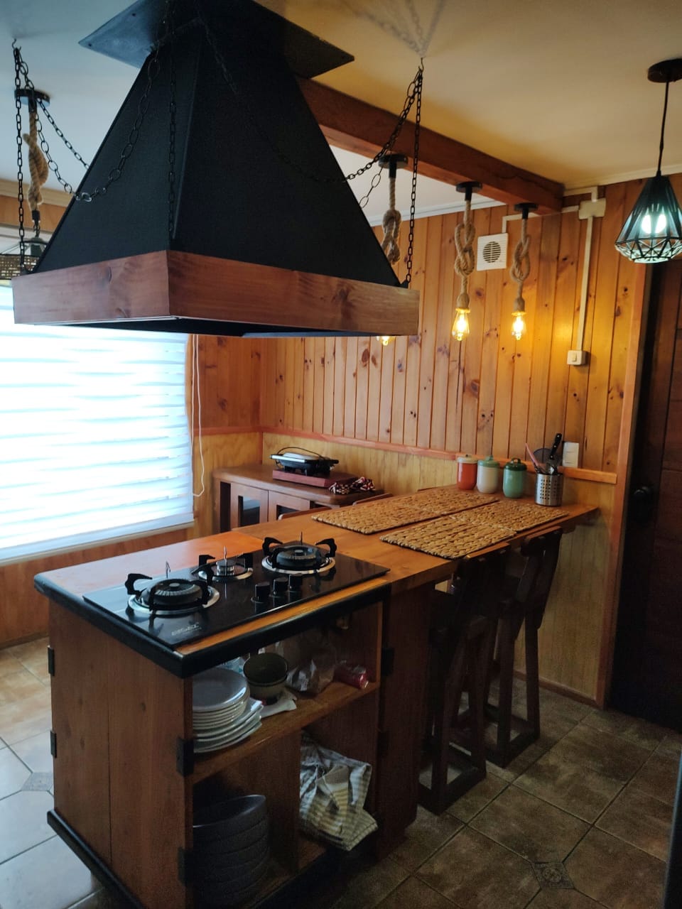 Disfruta de nuestra cabaña recien construida, completamente equipada para brindar una comoda estadia para 6 personas, contamos con un amplio living comedor, una moderna cocina, habitacion principal con cama queen, una segunda habitacion con 2 camas individuales, tercera habitacion con una cama nido, estacionamiento para 2 vehiculos, refrigerador, estufa a combustion lenta, cocina , Direct tv, microondas, smart shower, parrilla, etc.