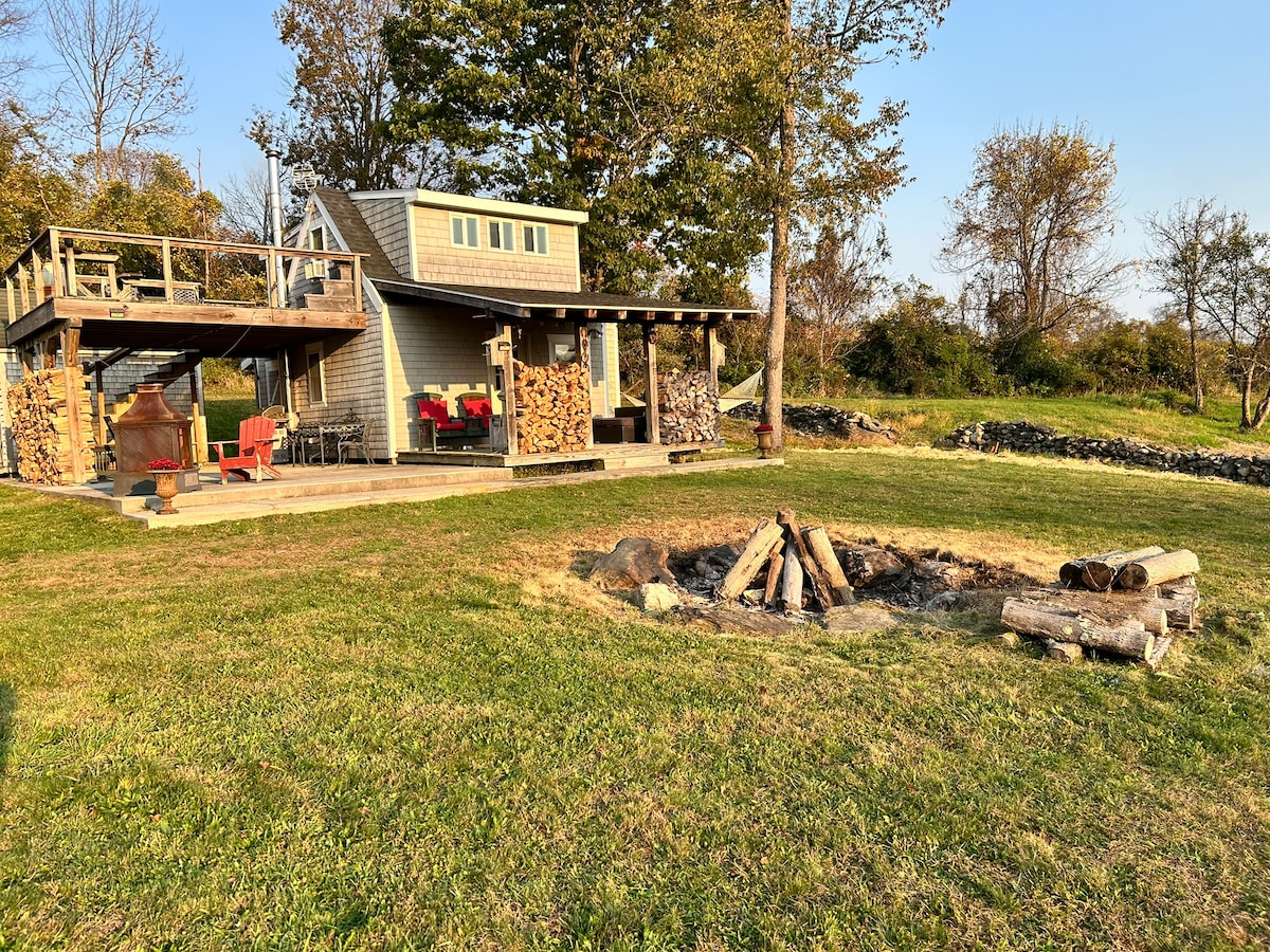 Blue Cabin is a cozy, design-forward retreat between the Capital Region and the Berkshires. Enjoy vaulted wood ceilings, a forest-green kitchen, and a spa-style bath. Outside, unwind in the covered lounge with U-shaped sectional, charcoal grill, and TV—or explore the backyard, where a creek runs through and a seasonal flower garden blooms. Peaceful, private, and perfectly located for both rest and adventure.