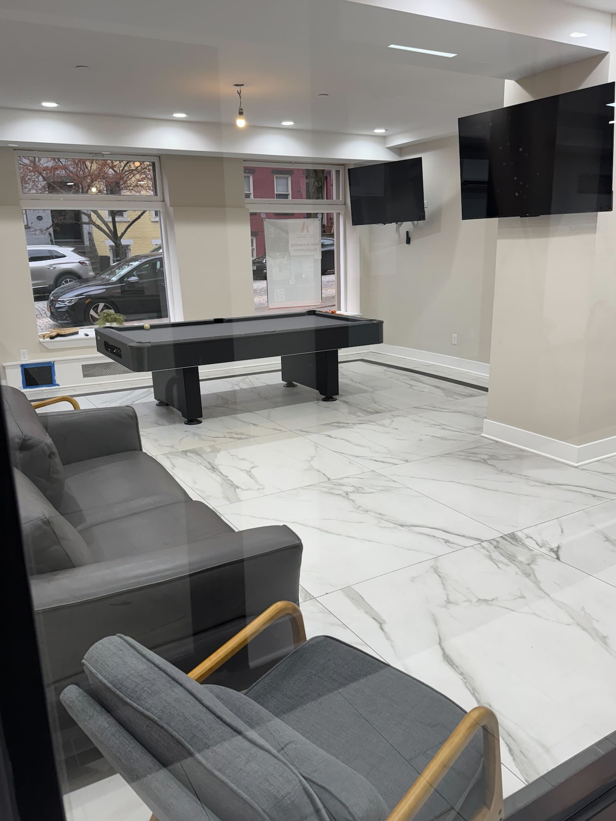 You’ll love the fast 1000MB WiFi throughout—whether working or streaming. Inside, there’s a 75” smart TV, a fully stocked, updated kitchen and bathroom, and work desk with a printer. Outside, the backyard is a favorite w. a 120" projector for movie nights, a grill and a heated firepit table to gather around. It's also centrally located: close to just about everything you'll want. Just minutes from MVP Arena, UAlbany & other colleges, malls, restaurants, hospitals, parks, downtown Albany & more.