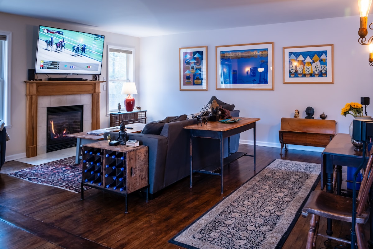 Experience a pleasant stay at this recently renovated and serene 4-bedroom, 2-bathroom family-friendly escape, situated just on the outskirts of Downtown Schenectady. Conveniently located near the bike path, harbor, locks, scenic hiking trails with waterfalls, and the ViaPort Aquarium, you can also warm up by the outdoor fire pit and explore 9 acres of trails. A quick 5-minute drive takes you to Proctors Theatre and Rivers Casino, and it's a short trip to Maple Ski Ridge for family fun.