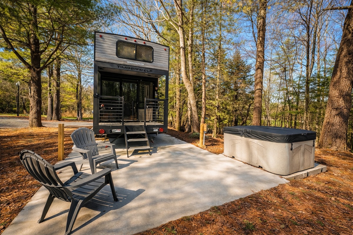 Our 1984 Airstream has been renovated with interior design and comfort in mind. This little oasis in the woods will give you peace and quiet, and a luxury salt water hot tub to help keep soak the stress away. Please check our availability for our other luxury cabins if The Airstream is booked! If the Airstream is booked during the week on dates that you would like, but The Lodge is available, let us know and we can give you The Lodge for the same rate!