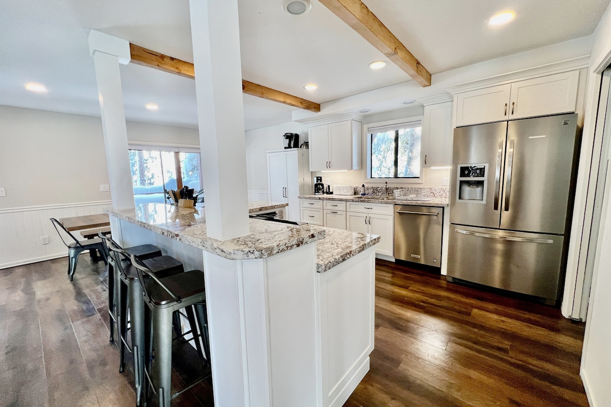 🏡 A Kid's Dream! Family-friendly, modern 3 br. home in Tahoe Donner. Kids room is spacious with a secret hideout 🤫, arcade cabinet, fort kit, games, keyboard & Nintendo. Sleds, airhockey, pool table! Very close to world-class ski mountains, Donner Lake, TD ski hill 🎿 + other HOA amenities (shared hot tub, gym, golf and pool). Modern kitchen, gas fireplace🔥, king bed in master. Quiet hood with beautiful views from the deck and balconies. Top-rated home - we'd love to host you!