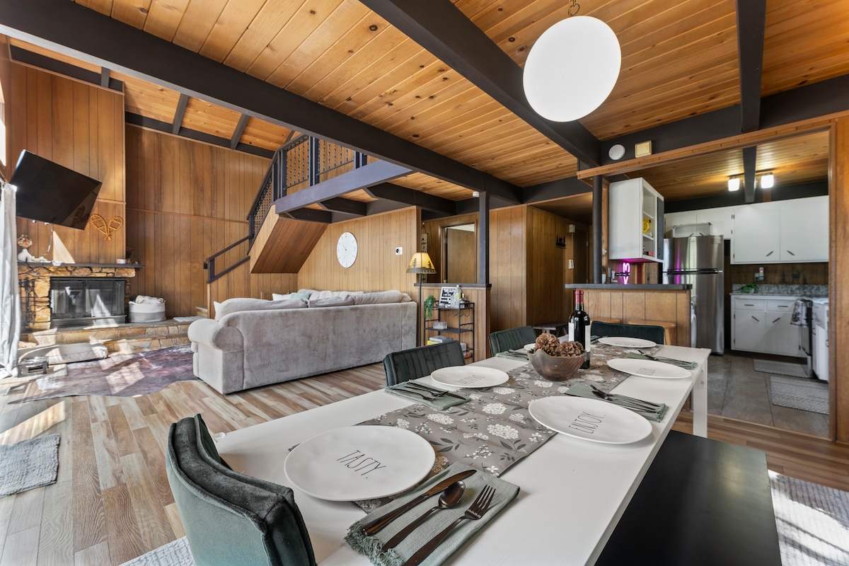 Tucked away on a quiet wooded lot in Tahoe Donner's world-class resort neighborhood, there's plenty to enjoy inside and outside our cabin. This is a 2,900 sq foot home, with multiple areas for groups to spread out and relax. From the open living area with a wood burning fireplace to the large kitchen, cozy loft, game room, and private office. Bedrooms include a bunk room, two main level / easy access rooms, and extra sleeping in the game room. Kids love the bunks, PS5, and pool table room!