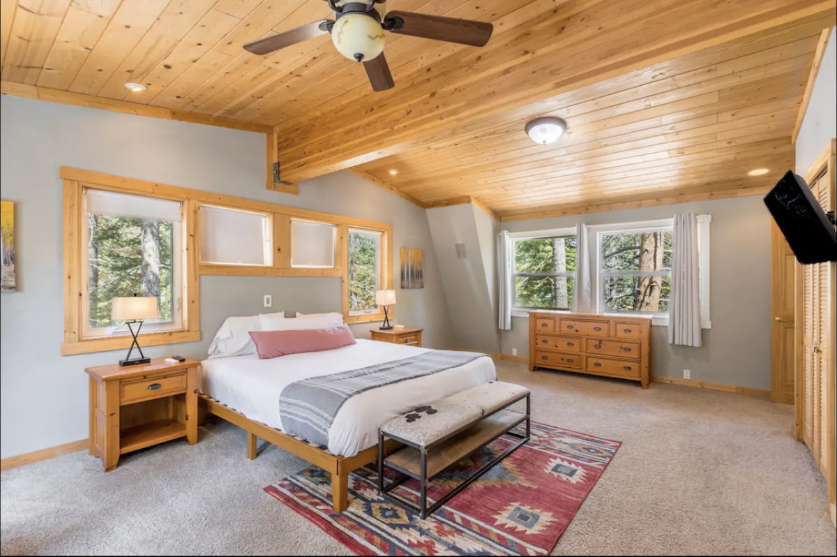 平均评分 4.94 分(满分 5 分),共 93 条评价明亮且适合家庭入住的塔霍唐纳(Tahoe Donner)房源,带空调