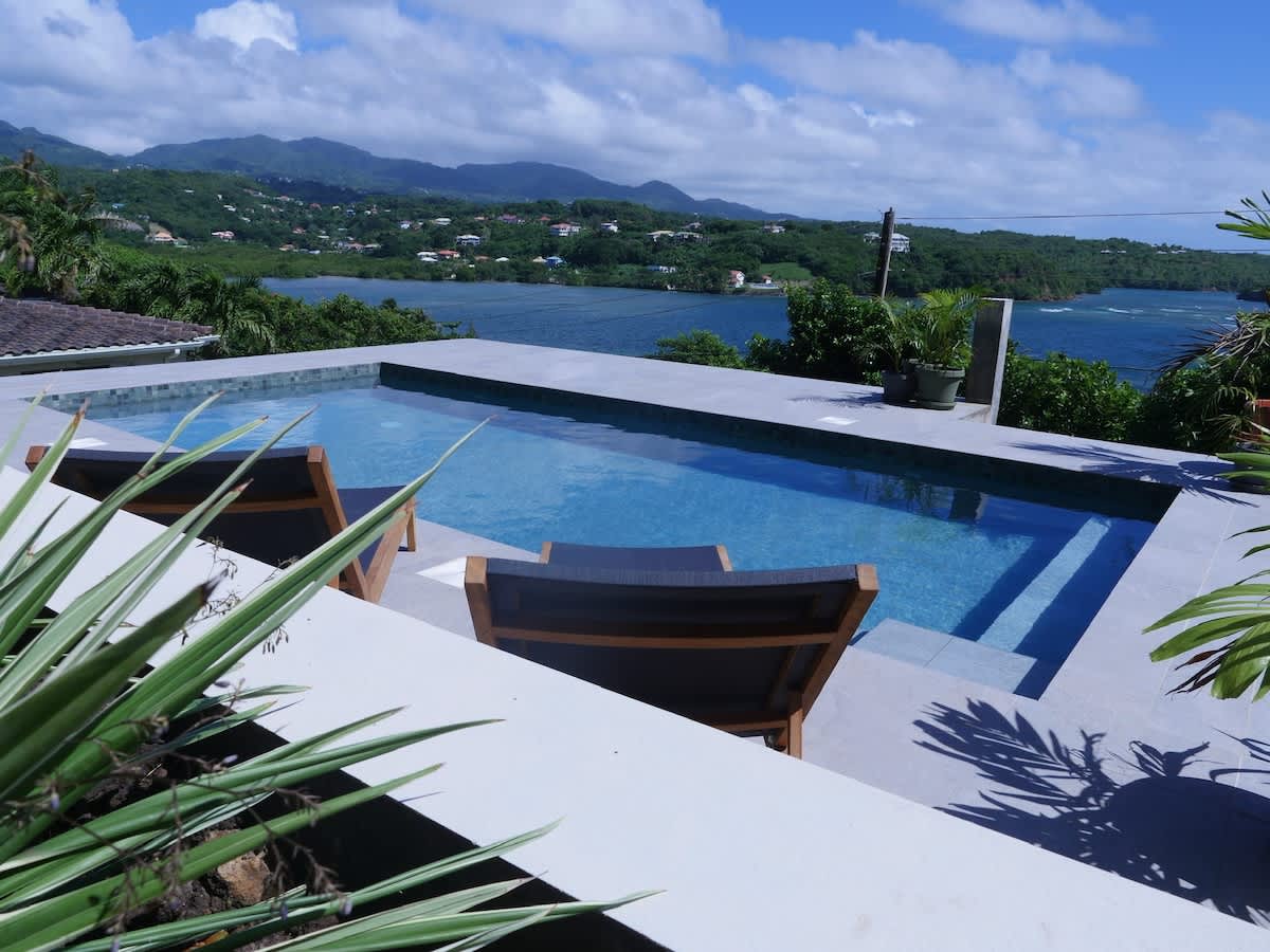 Oceans View Sweets is a modern 2-bedroom space. It's ideal for individual retreat or time away with loved ones. It is surrounded by the Caribbean Sea and Atlantic Ocean in the beautiful Fort Jeudy community. It has everything you will need for your stay. There is also a large upstairs terrace that has plenty of room for dining. You can walk to the beach, relax by the pool, take a hike around the seaside terrains or take a 15-minute drive into the town or into Grand Anse. Lots to do and see.