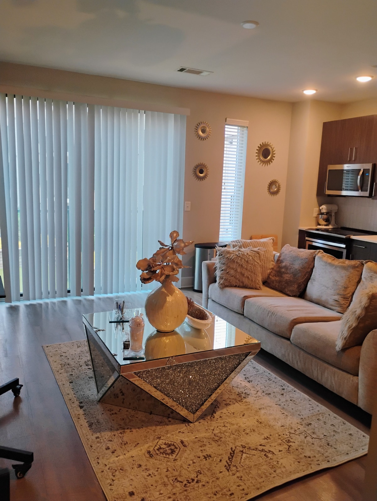 This Casual Executive apartment to stay is perfect for group trips, it is located by the Truist Park home of the Braves and a easy 5 min walk to the Coca Cola Roxy. During your stay, you will rest in a huge King size bed, the kitchen is fully equipped with everything you may need and safe dishes for the little ones. The spacious living room has a comfortable queen size sofa bed for additional guests, and a beautiful view of the lake.
