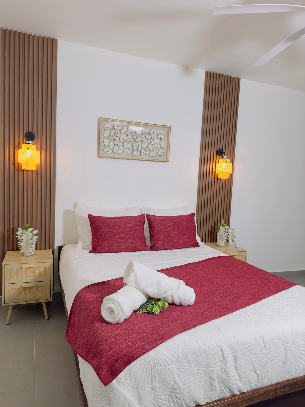 Relax in this stylish and private space, perfect for couples or solo travelers! Enjoy a cozy king bed, two A/C units, and a sparkling bathroom. Located in a quiet, gated community with safe parking and just 13 minutes from the airport. Short drive to tourist attractions, restaurants, and beaches. Plus, with our powerful SOLAR SYSTEM AND BACKUP GENERATOR, SO YOU’LL NEVER LOSE POWER, and a 1,000-gallon water tank, you’ll enjoy a worry-free stay with no power or water interruptions.