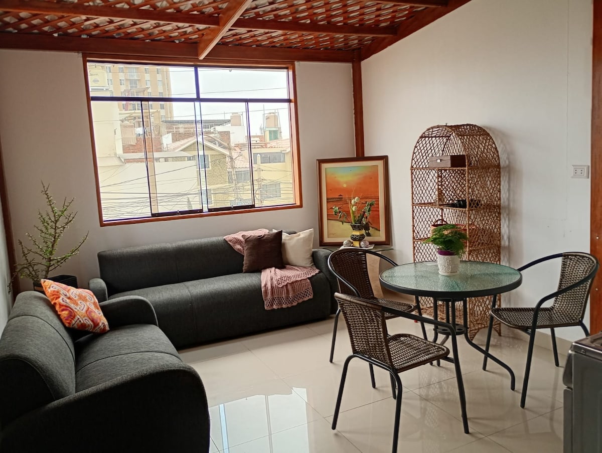 ✨Acogedor departamento en Trujillo✨ Disfruta de un espacio tranquilo y acogedor, en una de las principales avenidas. A solo 10 minutos de la Plaza de Armas y del Mall Plaza, con markets, restaurantes, farmacias y gimnasios cerca. Ubicado en el segundo piso, en un ambiente seguro y cómodo. Equipado con todo lo necesario para sentirte como en casa. Ideal para descansar tras recorrer todos los sitios turísticos de nuestro hermoso Trujillo.☀️🏖️💛