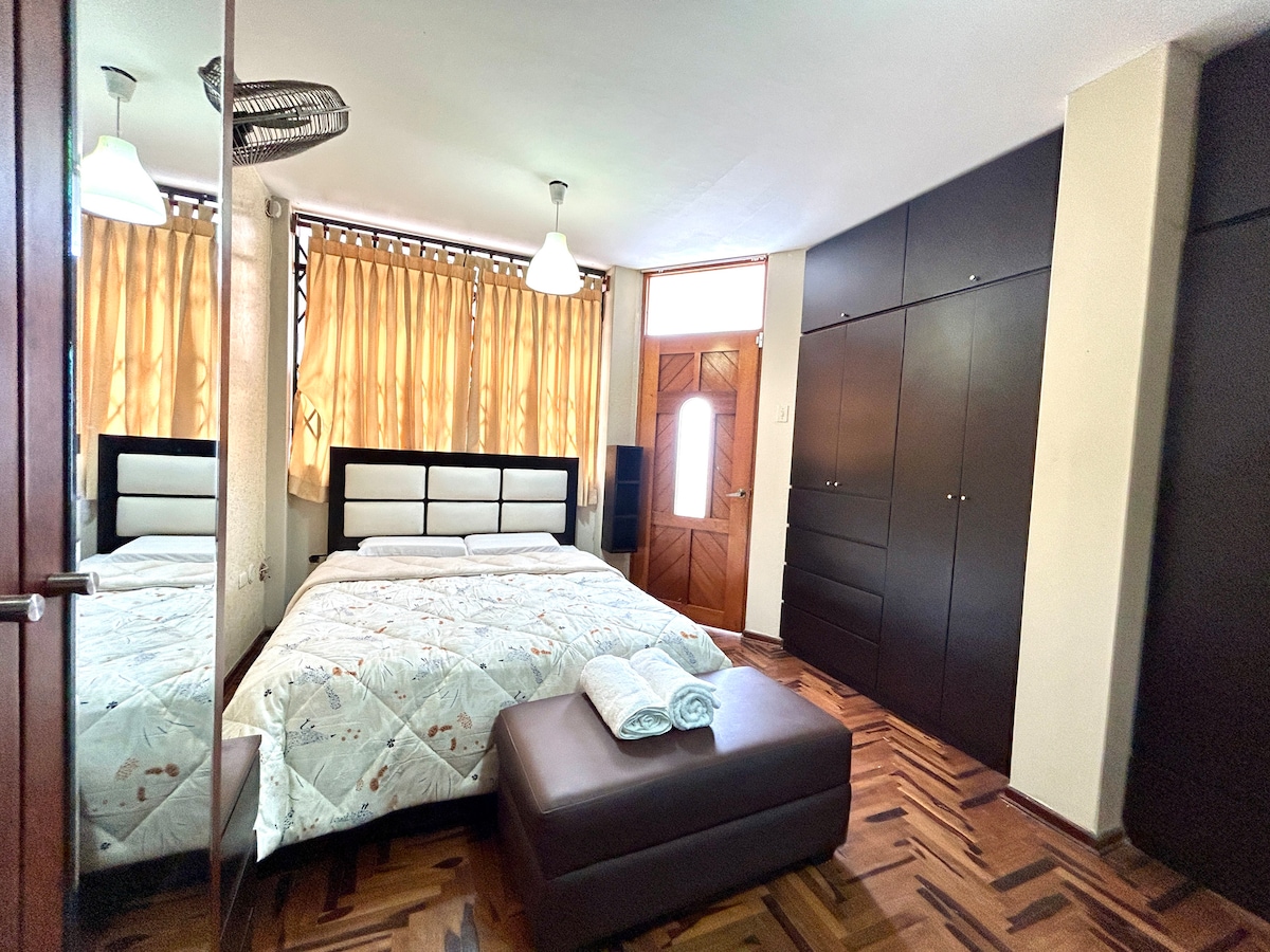 Privado ubicado a 2 minutos caminando a la playa, en EL Corazón de Huanchaco a media cuadra placita principal, departamento entero Excelente WIFI, SEGURO cordinamos check in y out dos dormitorios cualquier pregunta con gusto la responderé. Agua Caliente, cocina equipada,comedor y salita segundo piso. Estacionamiento en la calle o en la plaza hay vigilantes , tambien hay uno privado cerca. pueblo surf moche personas con buenas vibras!