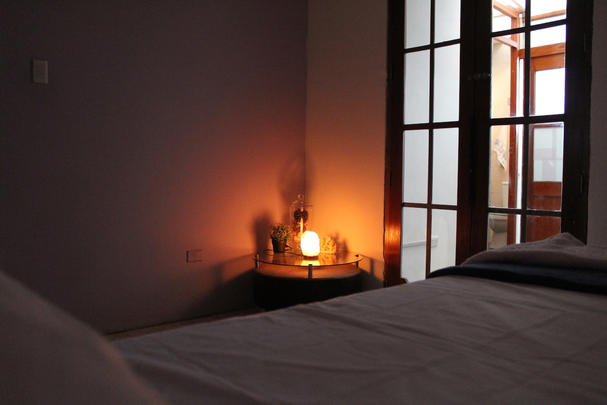 Disfruta de la sencillez de este alojamiento tranquilo y céntrico, es un hermoso minidepartamento de estreno, ubicado en un tercer piso, con vista interna de la vivienda y con entrada independiente, por escaleras ,con una capacidad de hasta 3 personas ,ubicado en el centro de la ciudad de Trujillo, a 8 minutos de la plaza de armas de la ciudad, cerca a restaurantes , farmacias y agencia de viajes . Se puede emitir factura o boleta previa coordinación.