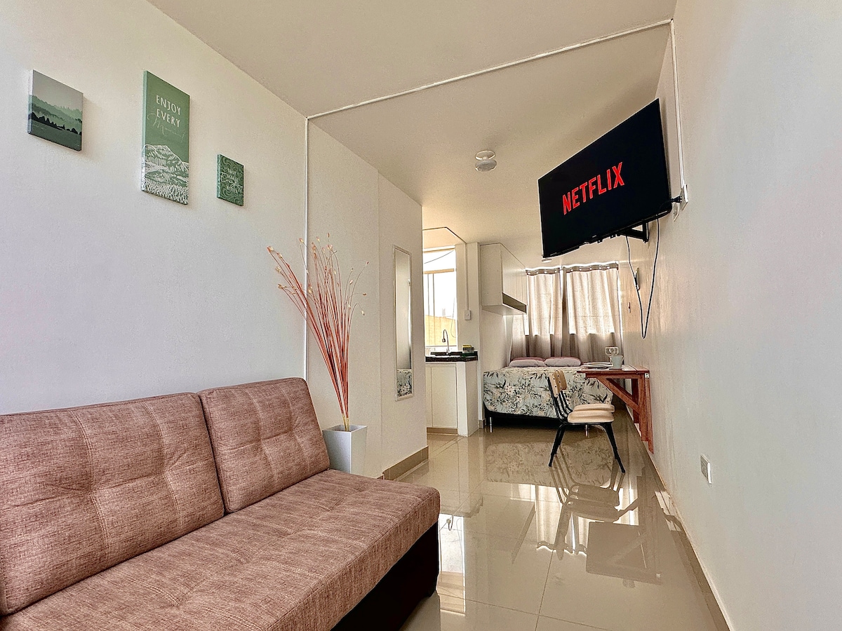 Monoambiente cómodo y seguro cerca al Óvalo Papal. Equipado con una cama de dos plazas y dos camas individuales, ideal para hasta cuatro personas. Cuenta con TV de 55 pulgadas con acceso a plataformas de streaming y WiFi de alta velocidad. Ubicado dentro de un condominio privado con vigilancia permanente y videovigilancia. Excelente ubicación con acceso rápido a transporte, comercios y puntos de interés.